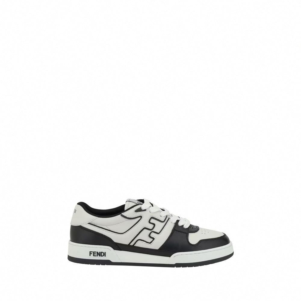 Sole: Two-tone white and black rubber cupsole with lateral "FENDI" branding