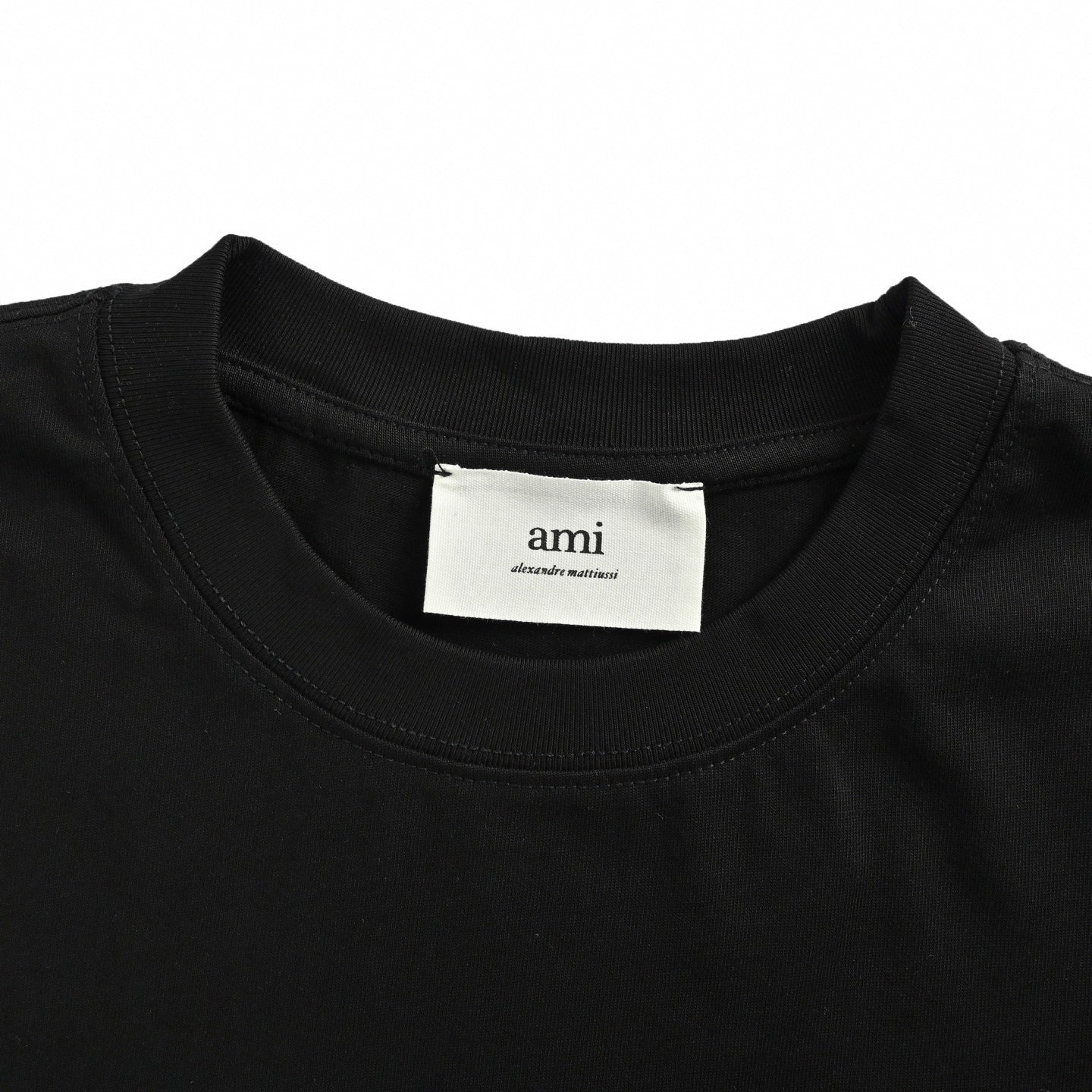 Cut from structured, premium cotton jersey in a solid black, the design is defined by the massive "Ami de Coeur" logo on the chest. Unlike standard prints, this red logo is executed in a rich, heavy chain-stitch embroidery, creating a tactile 3D texture that screams quality. The back keeps it low-key with a tonal "AMI" logo embroidered just below the neckline—a subtle sign-off for those in the know.