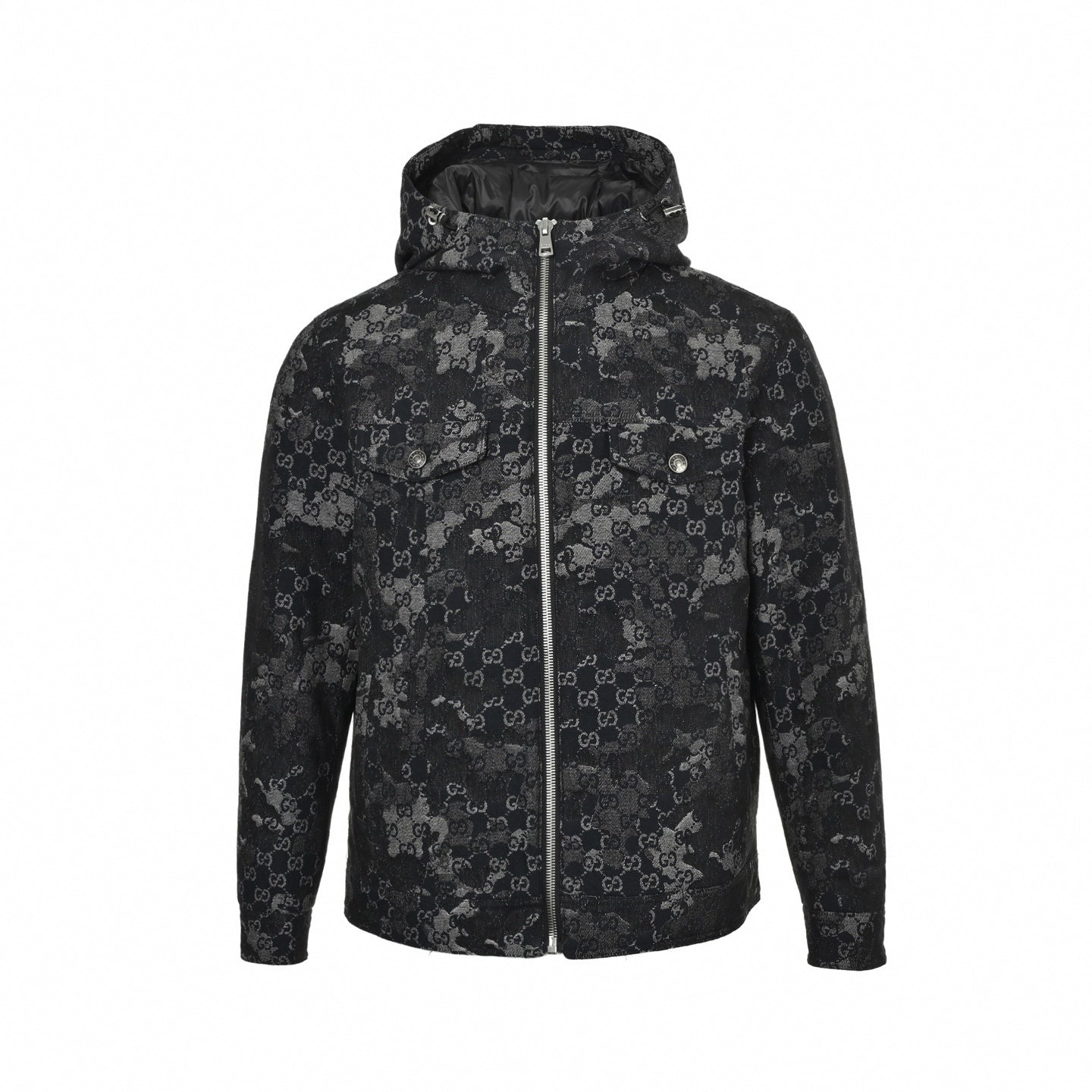 Crafted from premium polyamide, this piece delivers a sleek, structured silhouette with undeniable presence. The all-over GG camouflage pattern is executed with a textured finish, creating a stealthy visual effect that pops against the dark base. Finished with functional buttoned chest pockets, engraved silver-tone hardware, and an adjustable hood to frame the fit, this is a versatile heavy-hitter for your daily rotation.