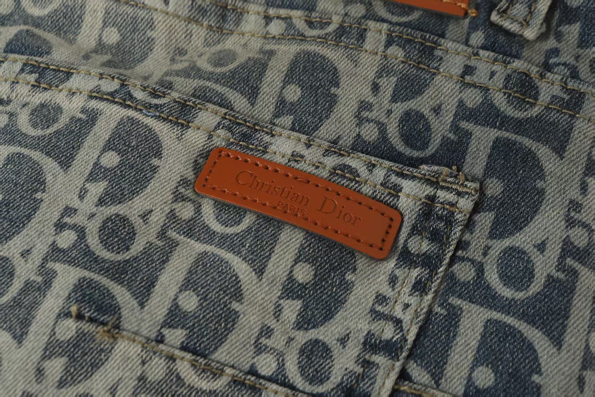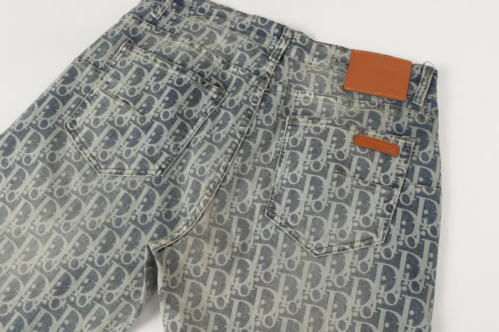 Crafted from premium cotton denim, the trousers feature a striking all-over monogram pattern that is softened by a heavy vintage wash, creating a unique, faded indigo finish that feels instantly broken in. Equipped with classic five-pocket styling, a silver-tone button fly, and a contrasting tan leather logo patch at the back waist, this is an elevated essential designed to anchor your daily rotation.