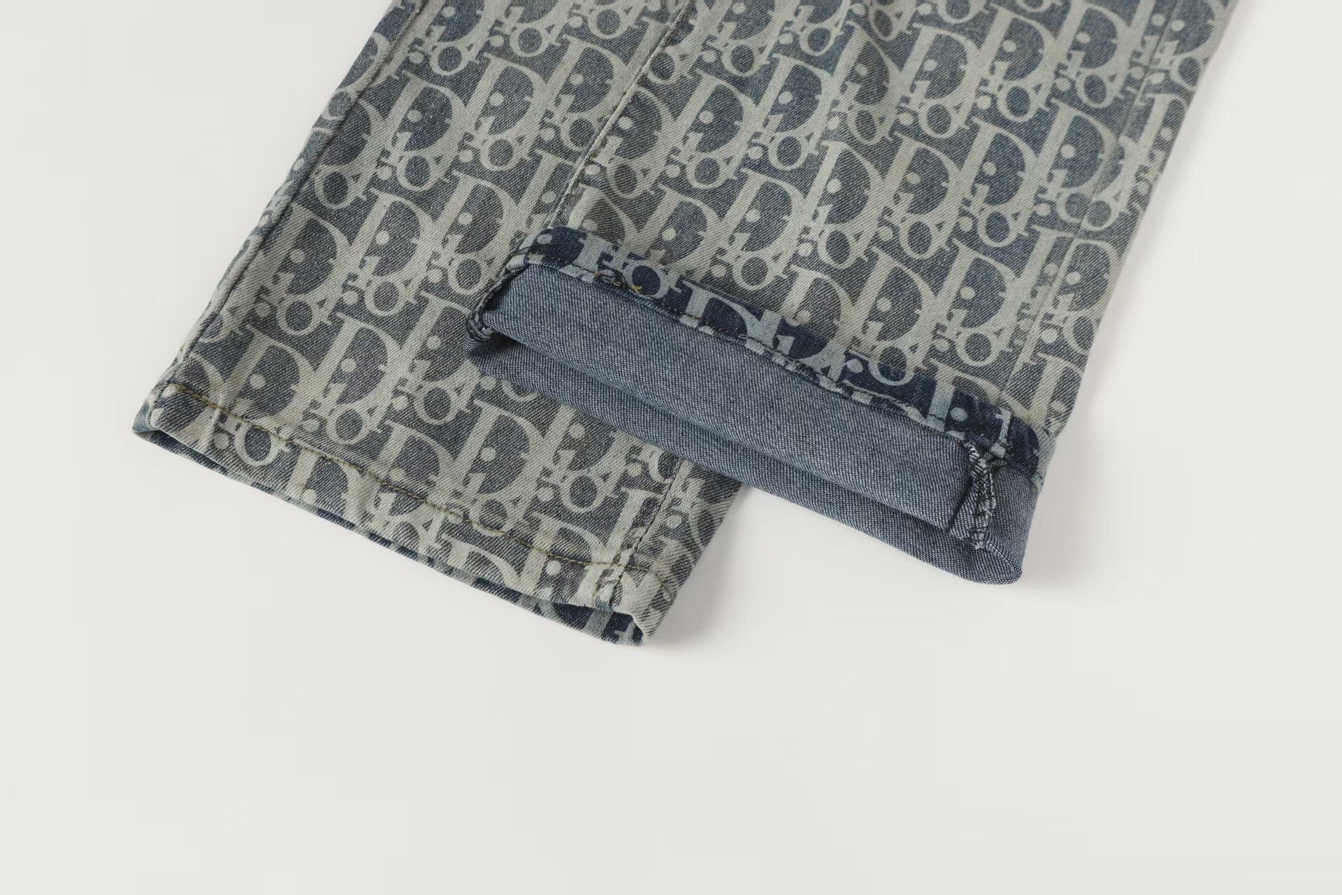 Oblique All-Over Print Faded Denim Jeans | Blue