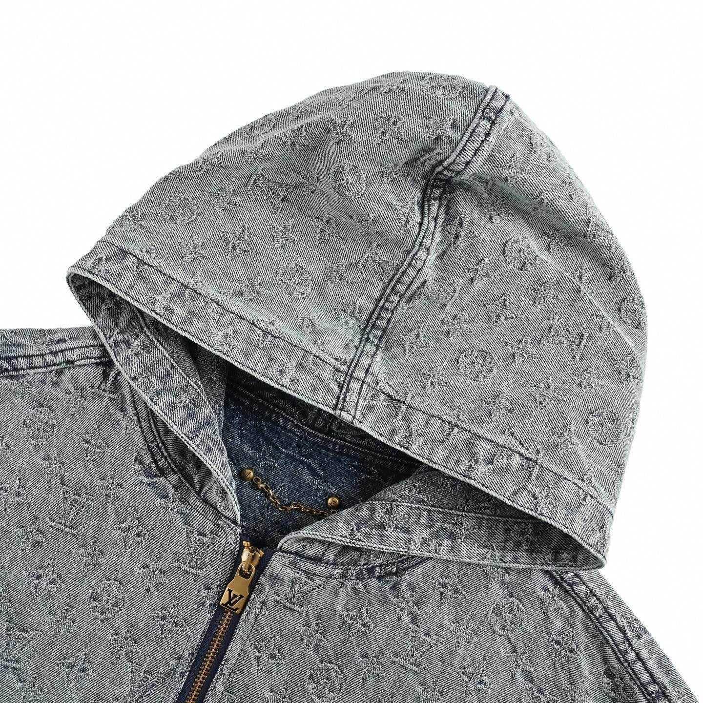Crafted from premium stone-washed denim, this piece offers a soft yet structured hand-feel with a vintage aesthetic. The all-over Monogram pattern is executed in a subtle jacquard weave, creating a textured visual depth that pops against the faded blue base. Detailed with gold-tone branded hardware, a central zip closure, and elasticated ribbed trims to frame the fit, this is a versatile heavy-hitter for your daily rotation.