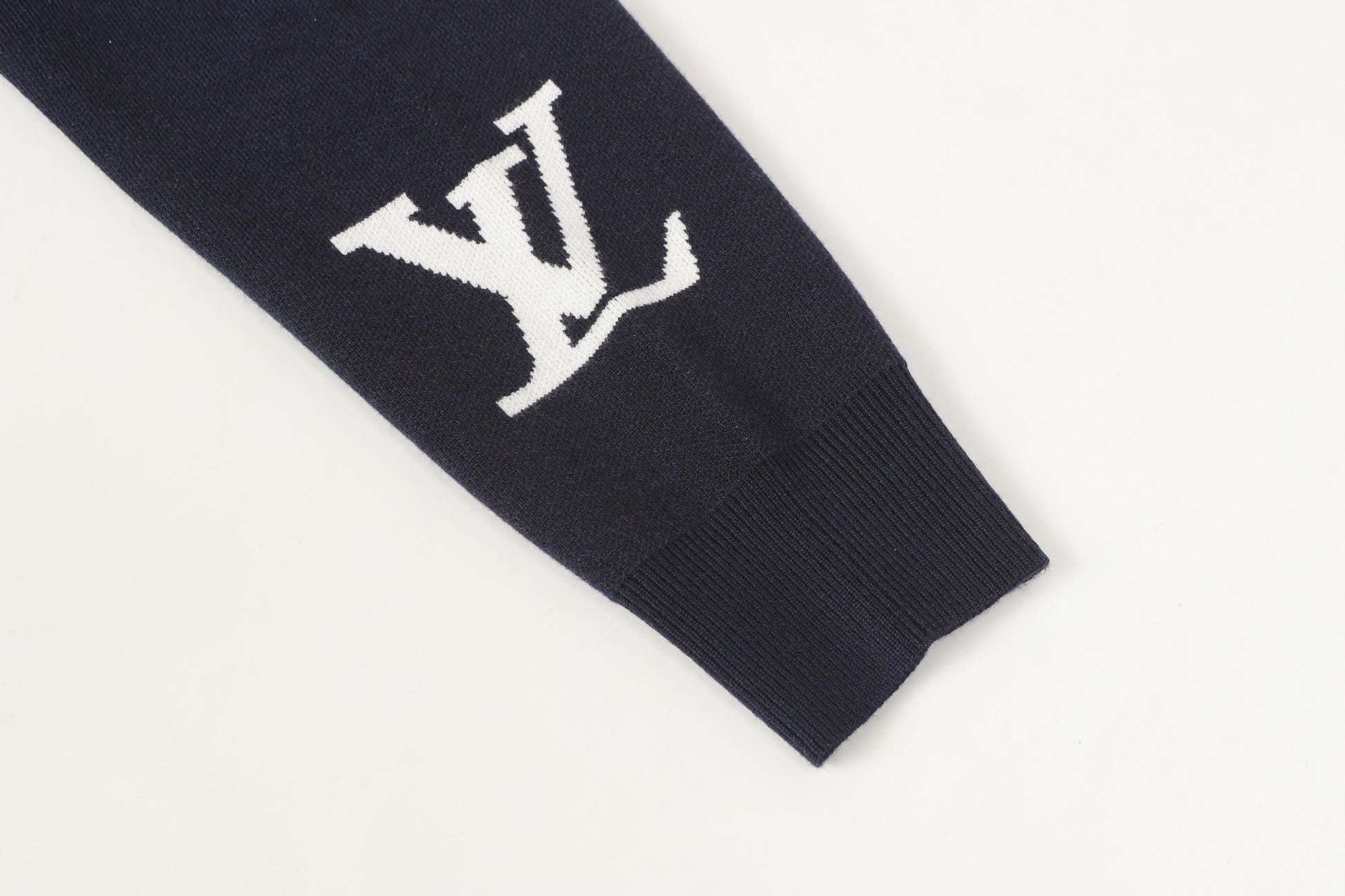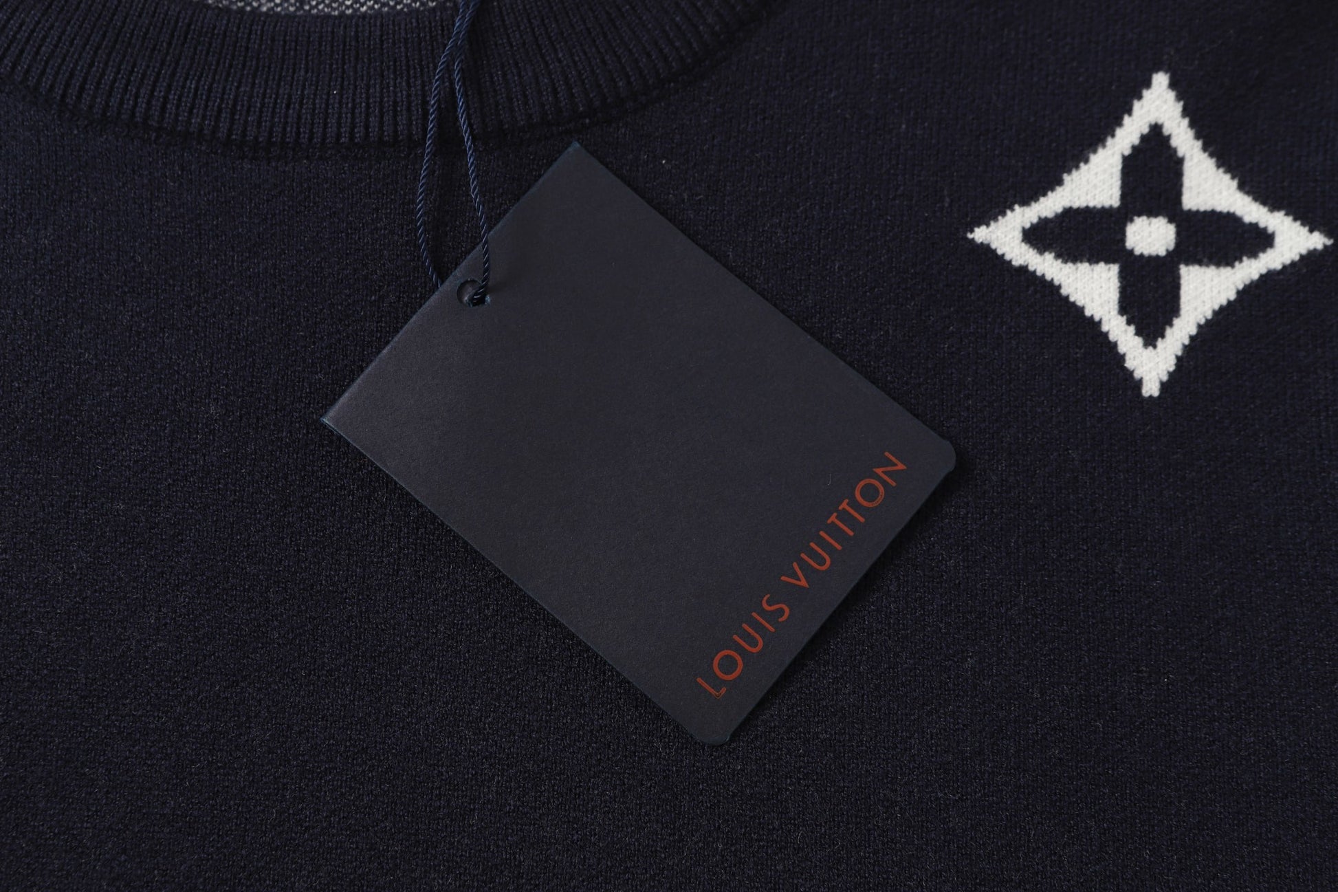 Experience the Maison's heritage through a bold, contemporary lens with this statement knit. This Louis Vuitton crewneck deconstructs the legendary Monogram, scattering oversized LV initials and floral motifs in a graphic, asymmetrical layout that demands attention.
