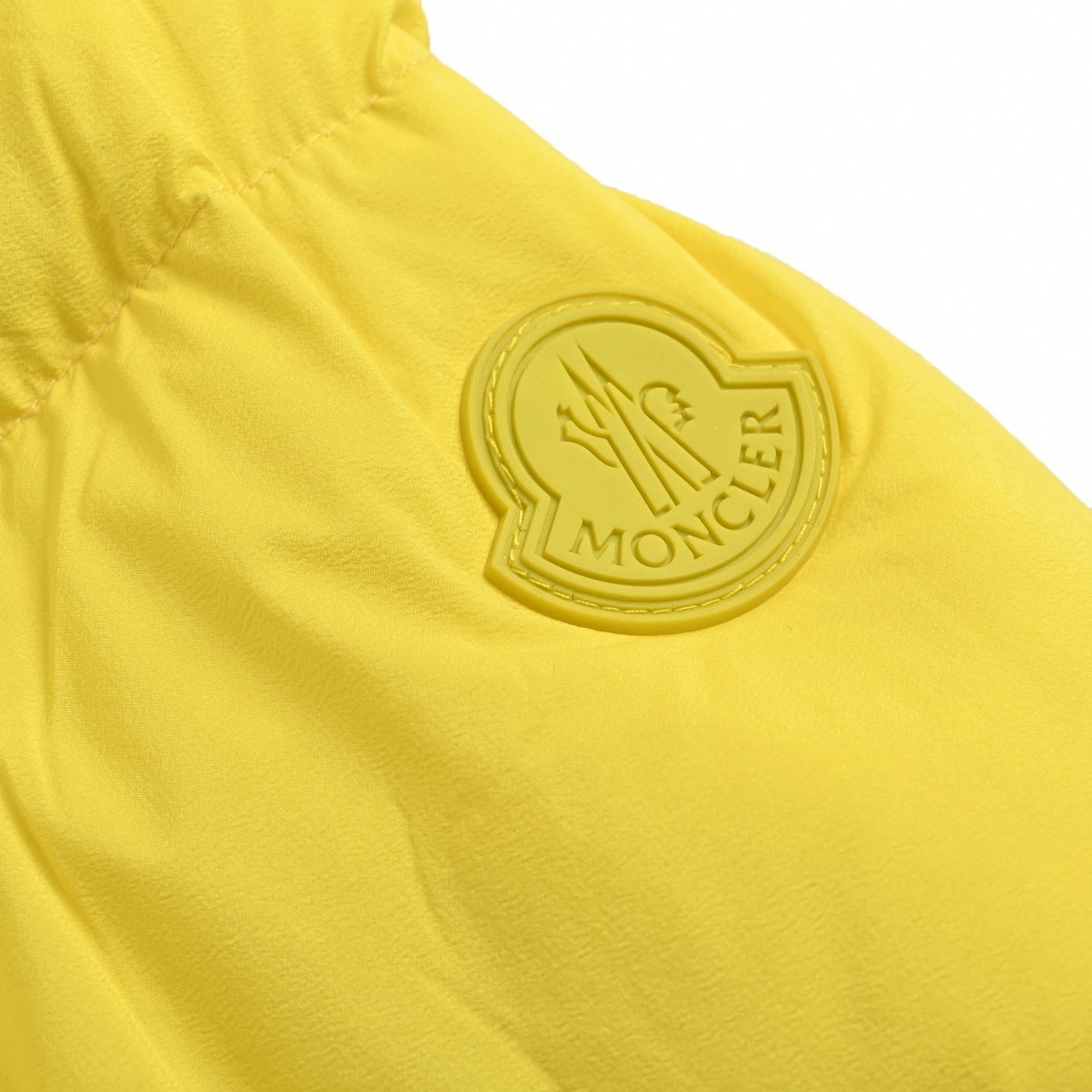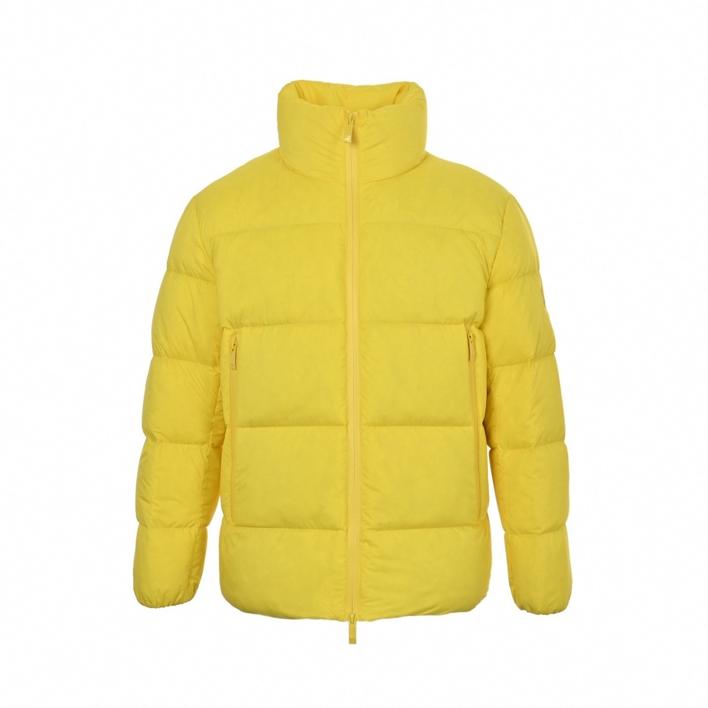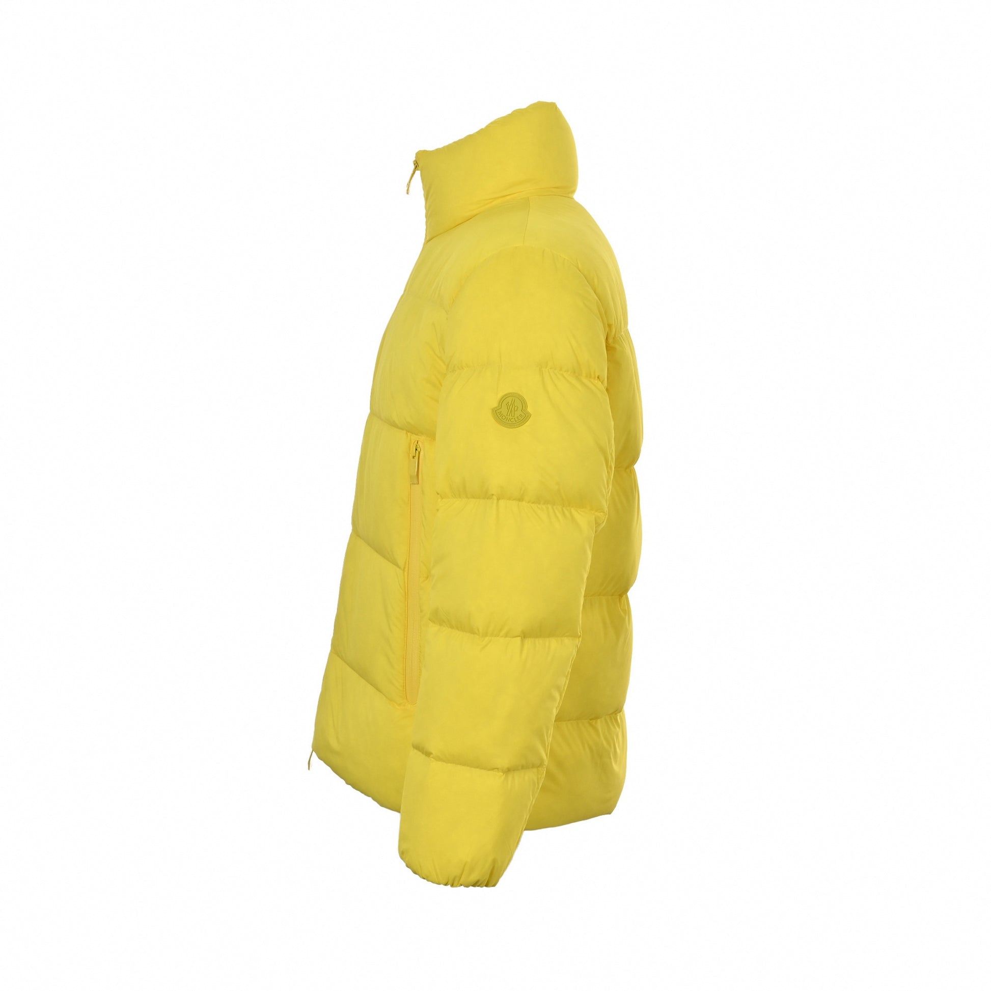 Crafted from a smooth technical shell, this piece delivers essential warmth with a bold aesthetic. The all-over bright yellow hue creates a massive visual pop, perfectly matched by the tonal, rubberized Moncler logo patch on the left sleeve for a modern, monochrome finish. Finished with a protective high stand collar, a central zip closure, and secure zippered pockets, this is a statement heavy-hitter for your daily rotation.