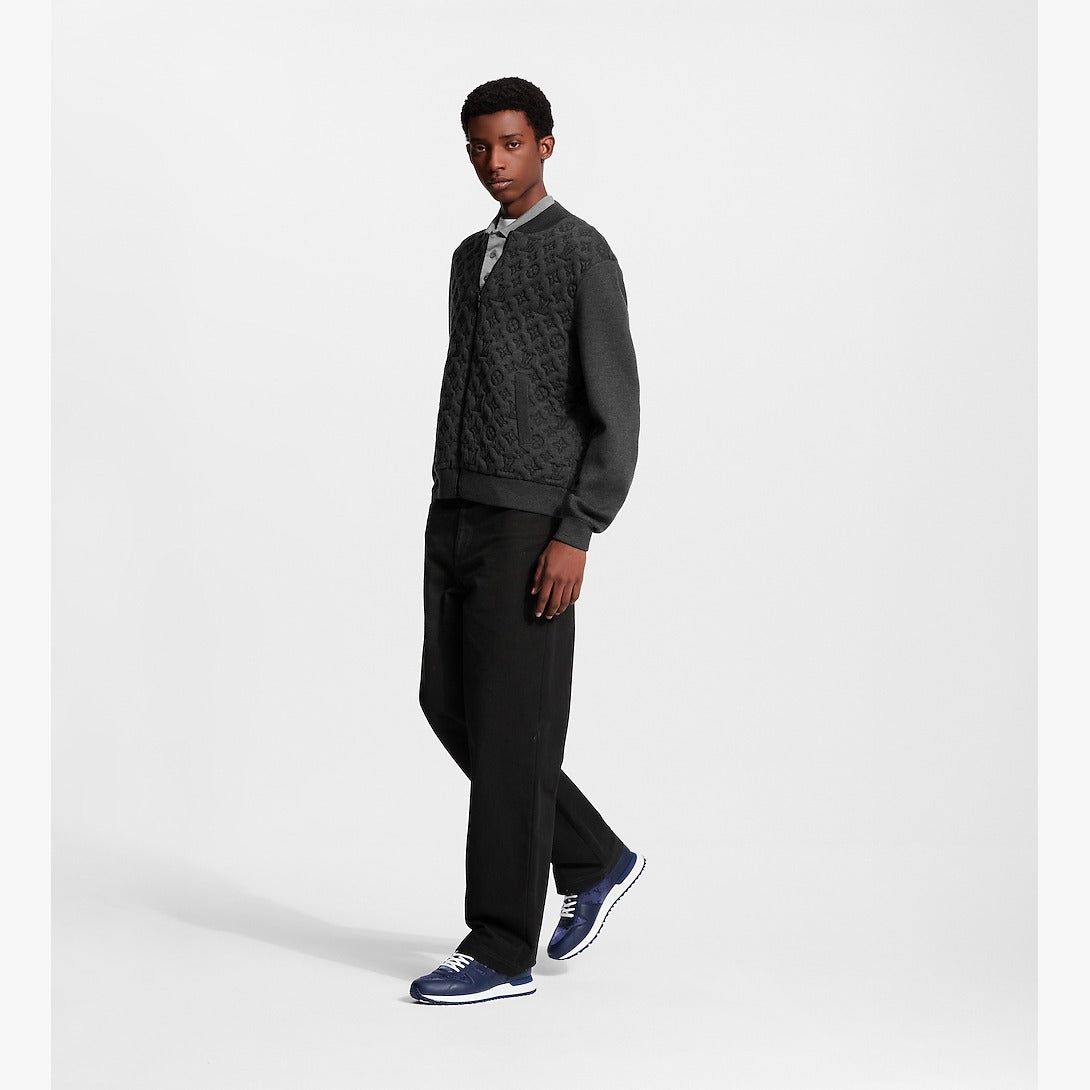 The Run Away sneaker is reimagined in a refined monochrome version combining Monogram jacquard fabric with smooth leather trim. This emblematic model, which was inspired by classic running shoes, is distinguished by its wedge-shaped outsole. It bears the LV Initials on the tongue and the Louis Vuitton signature at the back.