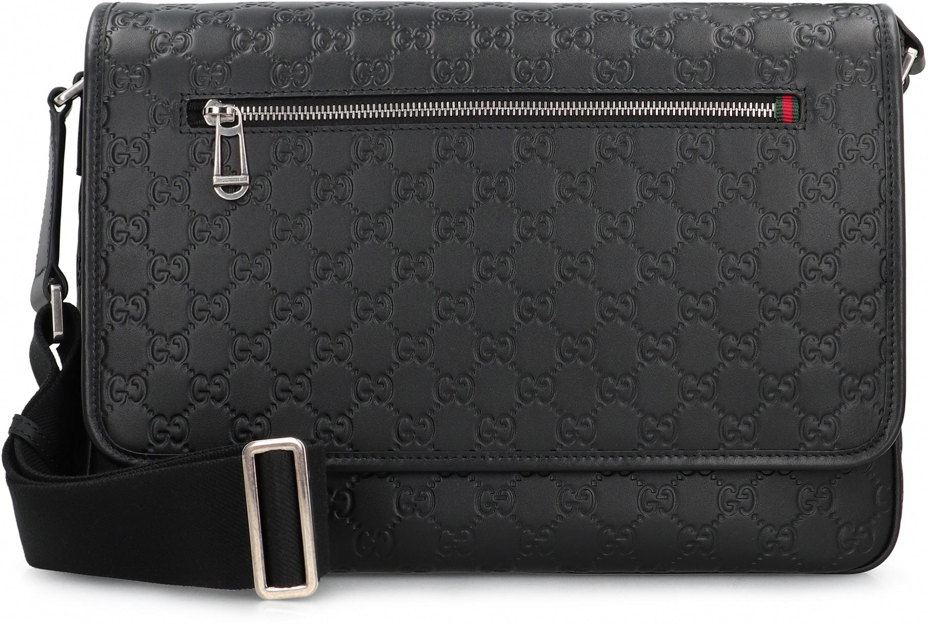 Smooth leather model with GG in black embossed and Web detail. Closure with magnetic flap, an external pocket with zip and an internal pocket with zip. Lining in black cotton and linen, adjustable fabric shoulder strap.