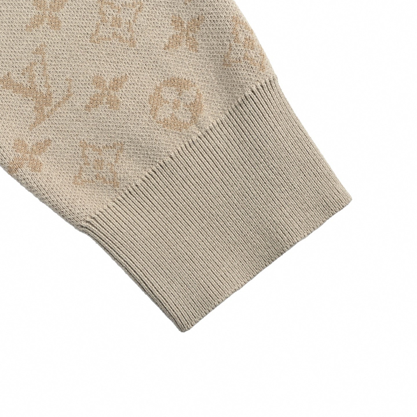 Redefine your knitwear rotation with this artful interpretation of the Maison's most iconic code. This Louis Vuitton crewneck features a distinctive gradient Monogram motif that seemingly dissolves from a rich beige at the hem into a crisp white at the shoulders, creating a modern, pixelated "spray" effect.