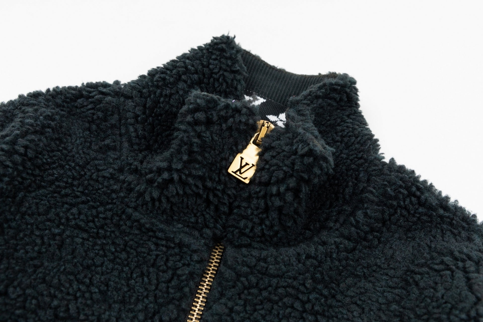Crafted from a dense, high-pile textured fleece, this piece delivers exceptional warmth and a rich hand-feel. The design is elevated by contrasting ribbed cuffs and a stand collar featuring signature Monogram motifs in stark white intarsia. Finished with a tonal logo patch on the chest, a gleaming gold-tone zipper, and a silky Monogram-lined interior, this is a versatile heavy-hitter designed to anchor your seasonal wardrobe.