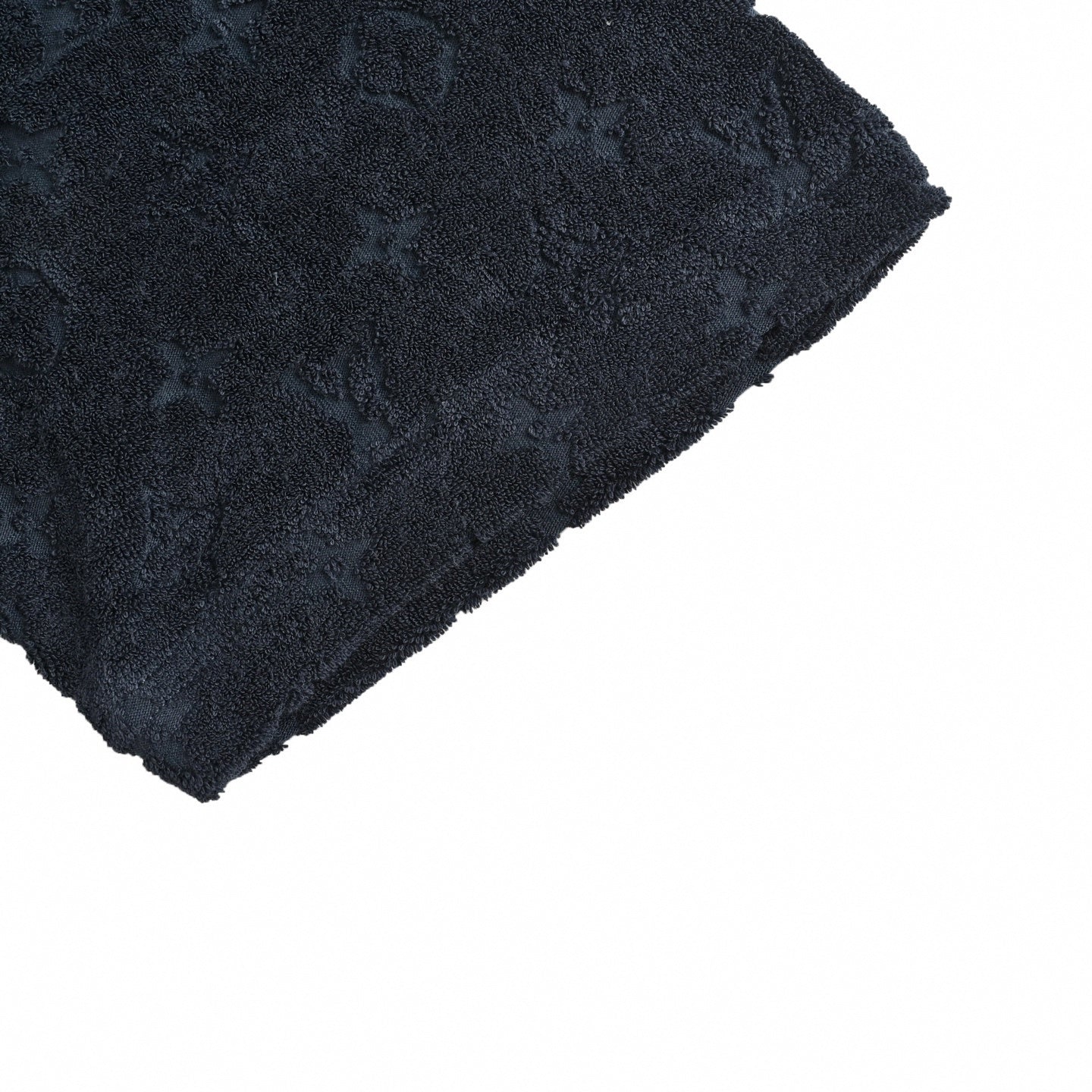 Expertly crafted in Italy, this tee features an all-over Monogram pattern created through a debossed jacquard technique, adding rich depth and a 3D effect to the deep navy base. The unique material offers a soft, towel-like hand feel, while the classic ribbed crewneck ensures a structured, comfortable fit. It is an elevated essential that seamlessly blends casual ease with high-fashion craftsmanship.