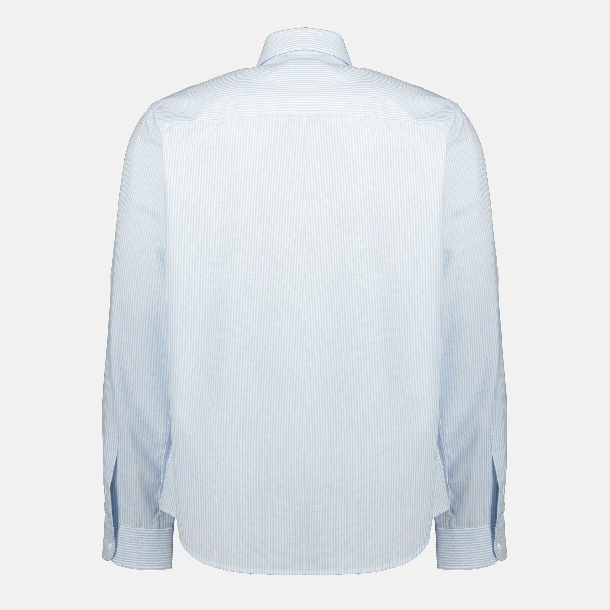 The Ami de coeur blue striped shirt is designed by AMI PARIS. It is part of the Autumn-Winter 2025 collection and is a unisex model.