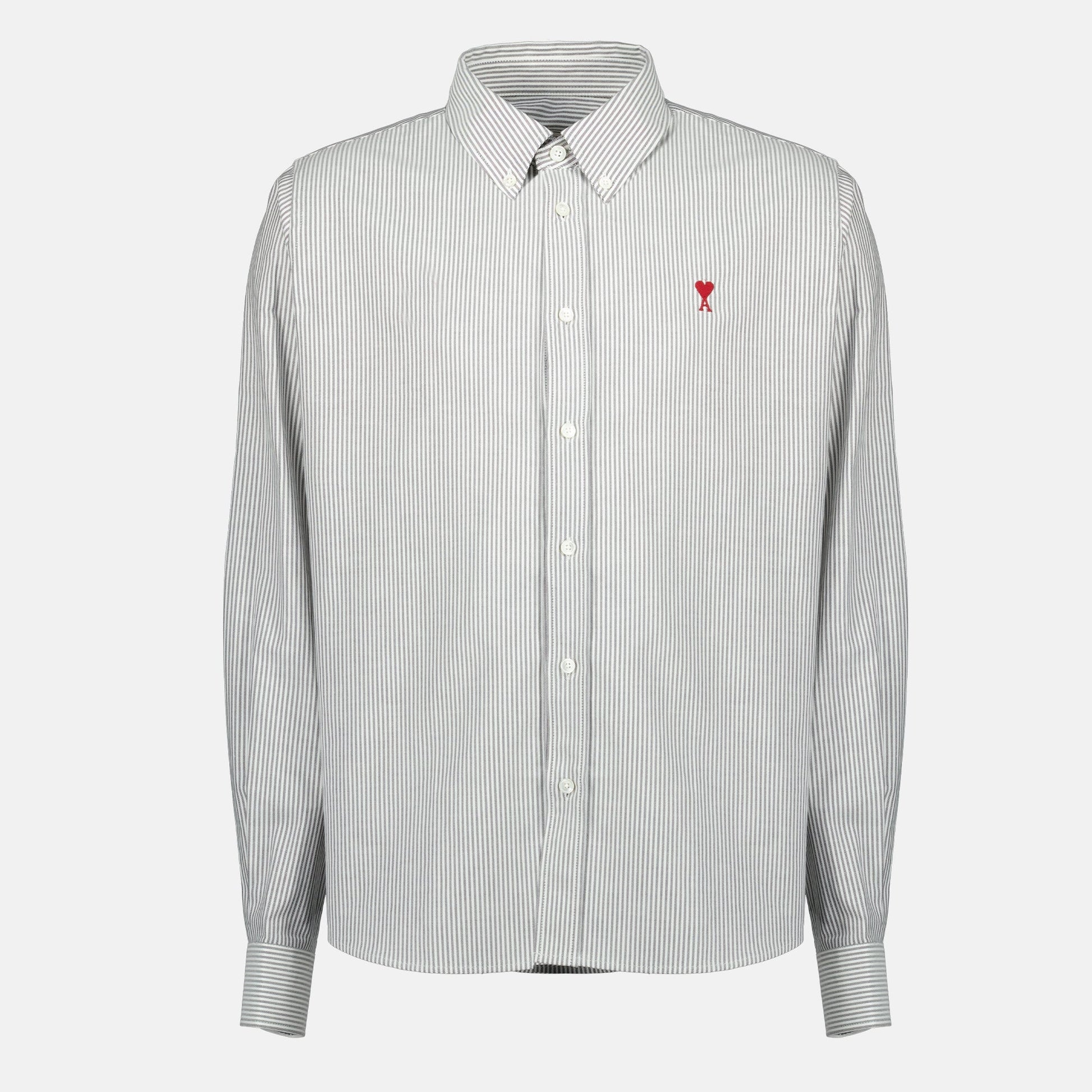 The white striped Ami de coeur shirt from the brand AMI Paris is a unisex model. It is part of the Fall-Winter 2025 collection.