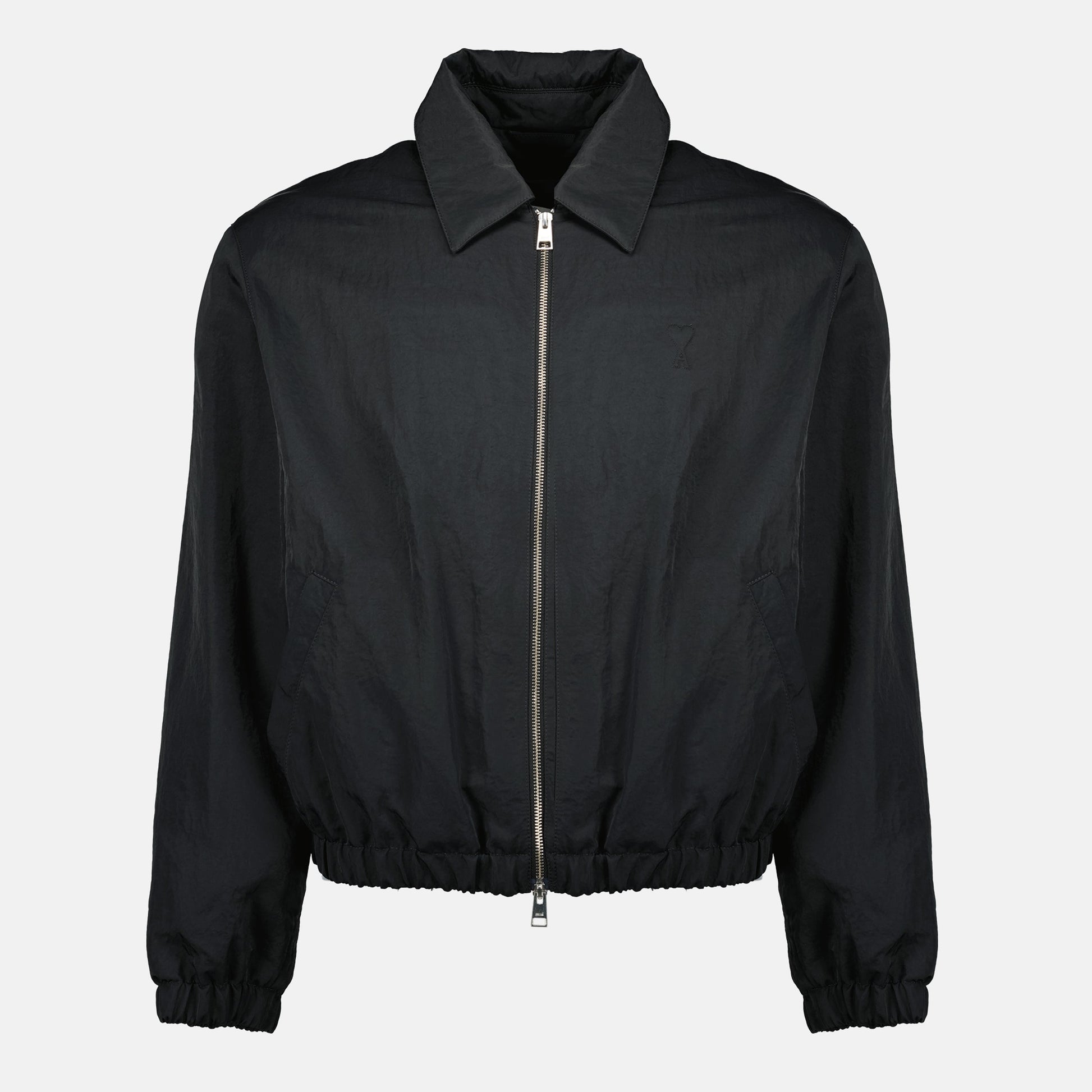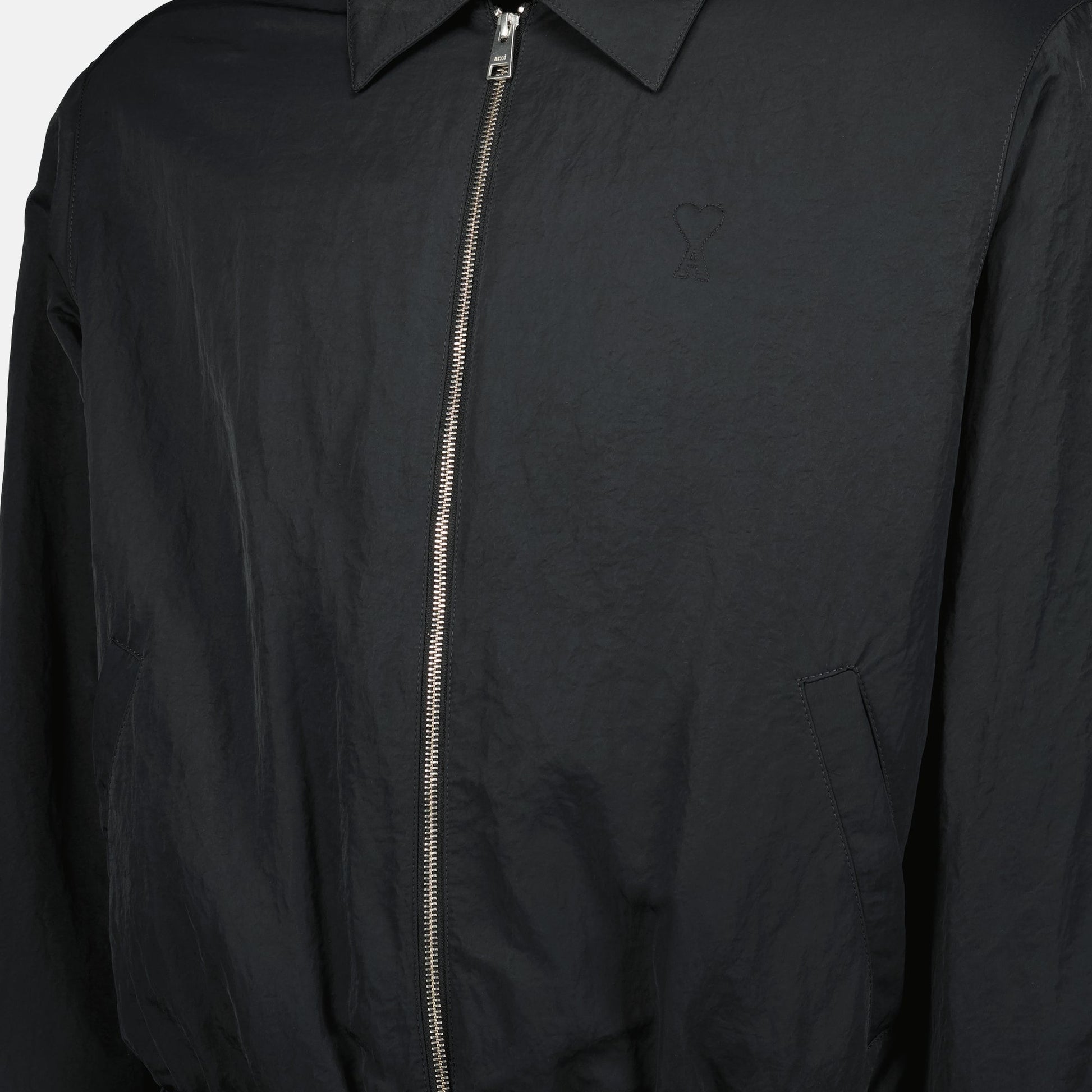 The AMI grey zipped jacket is a men's garment from the Fall-Winter 2025 collection. It is made from polyamide and features a classic design.