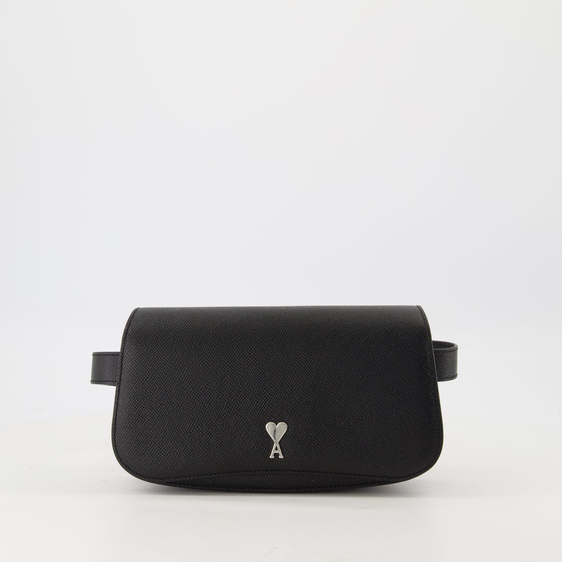 Banana bag Paris in grained leather from the brand AMI Paris, a unisex model from the Spring-Summer 2025 collection. It features a magnetic flap and a removable leather shoulder strap.