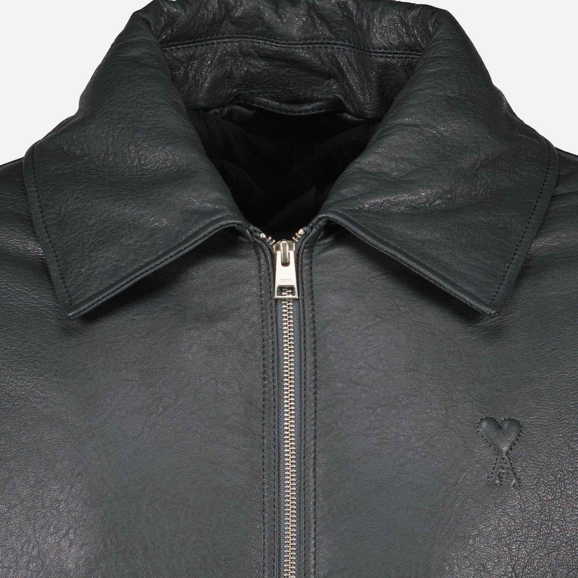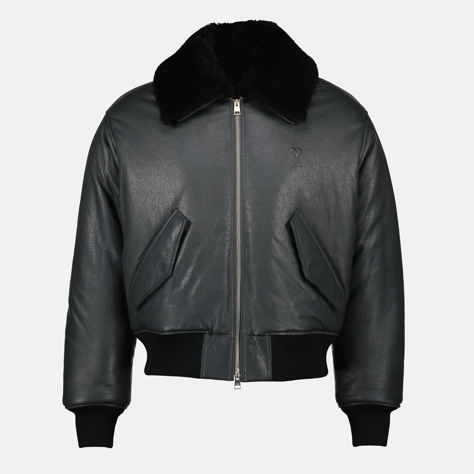 The leather bomber jacket from AMI Paris is a men's garment from the Autumn-Winter 2025 collection. It is made from lambskin with elegant and functional details.