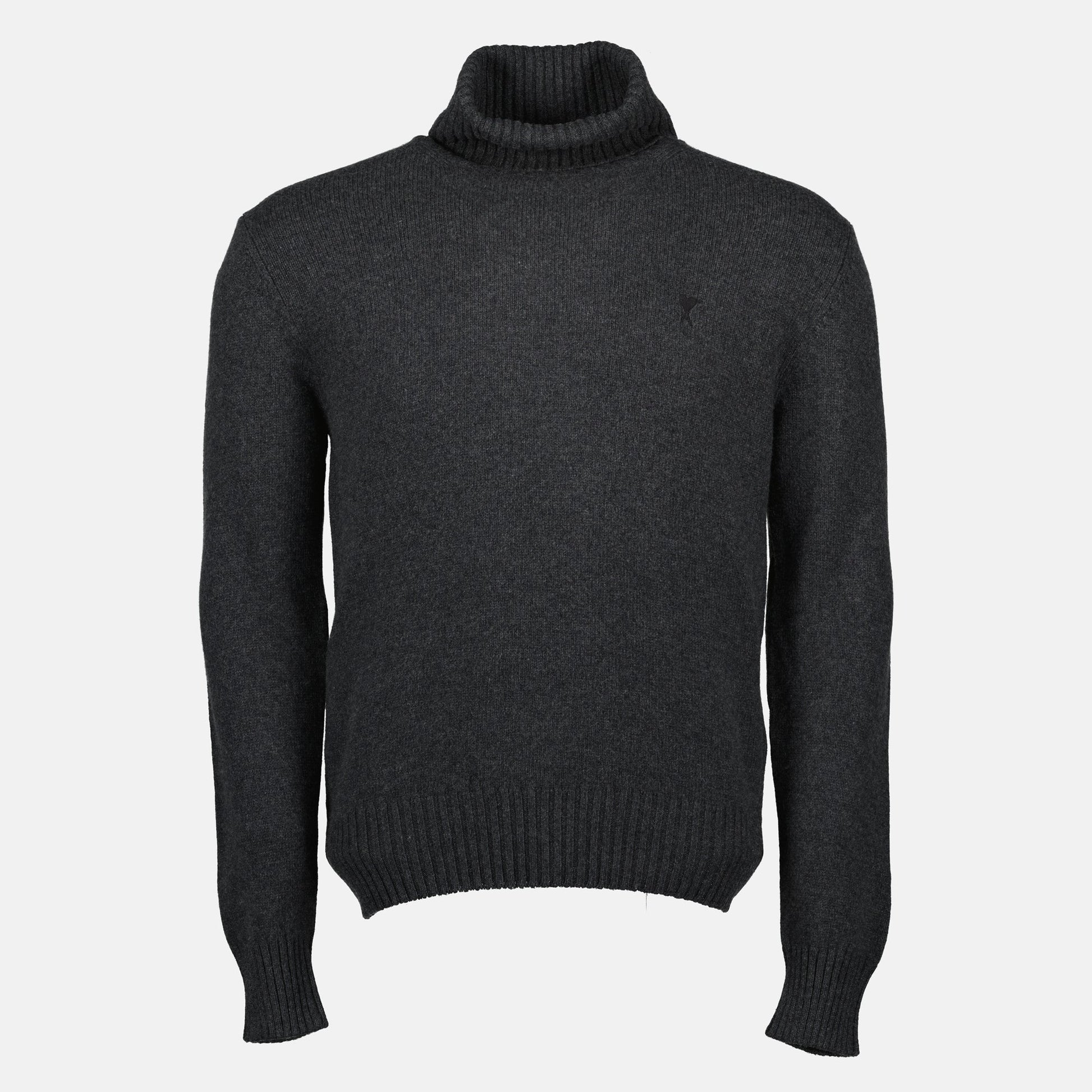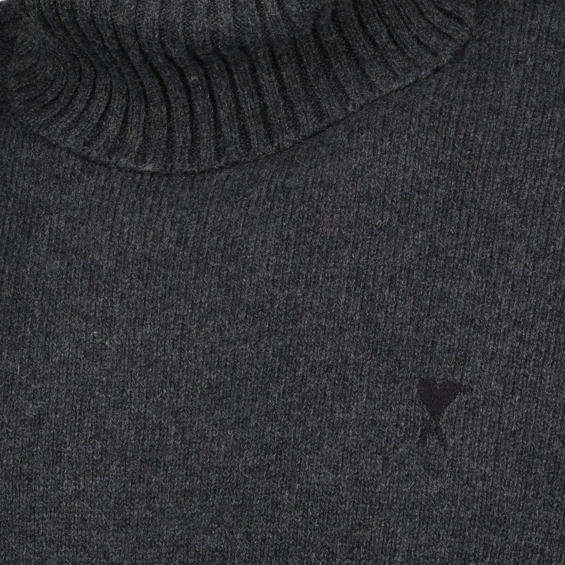 The gray Ami de coeur turtleneck by Ami Paris is a men's garment. It is part of the Autumn-Winter 2025 collection and is made from cashmere wool.