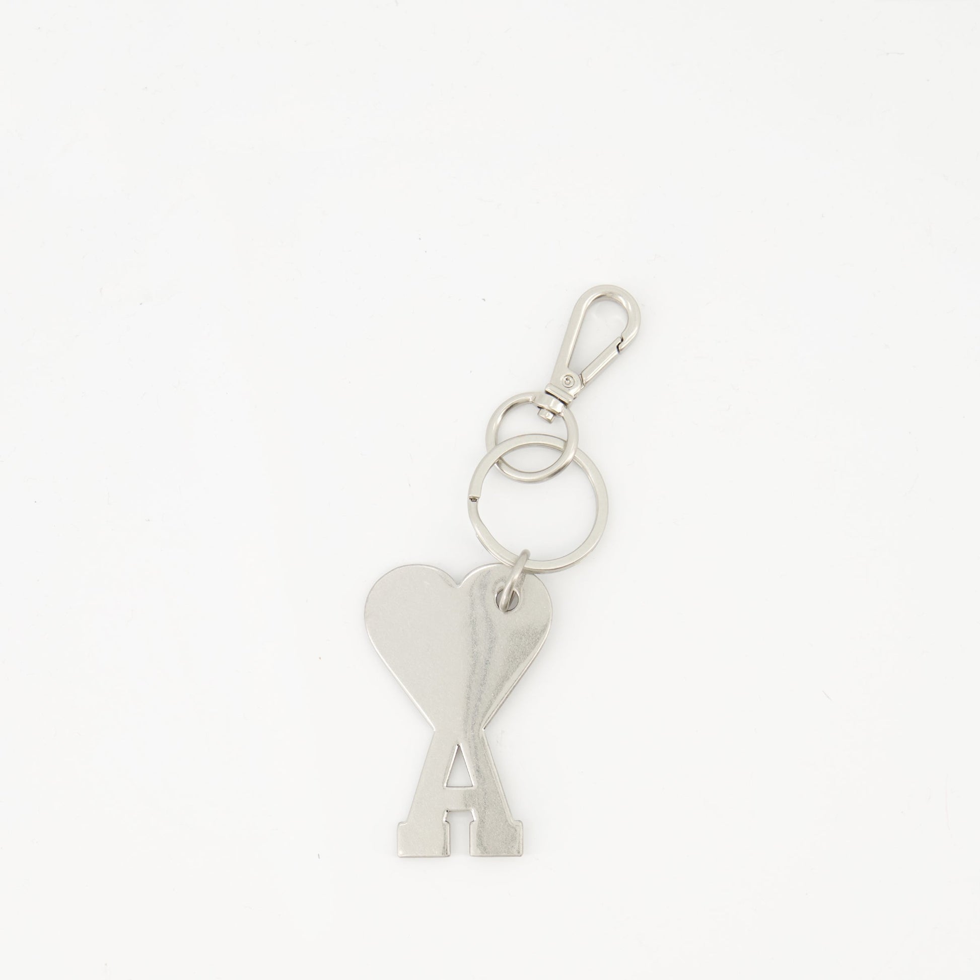 The silver Heart Friend keychain from the brand Ami Paris is a unisex accessory. It is part of the Autumn-Winter 2025 collection, made of brass with a carabiner clasp.