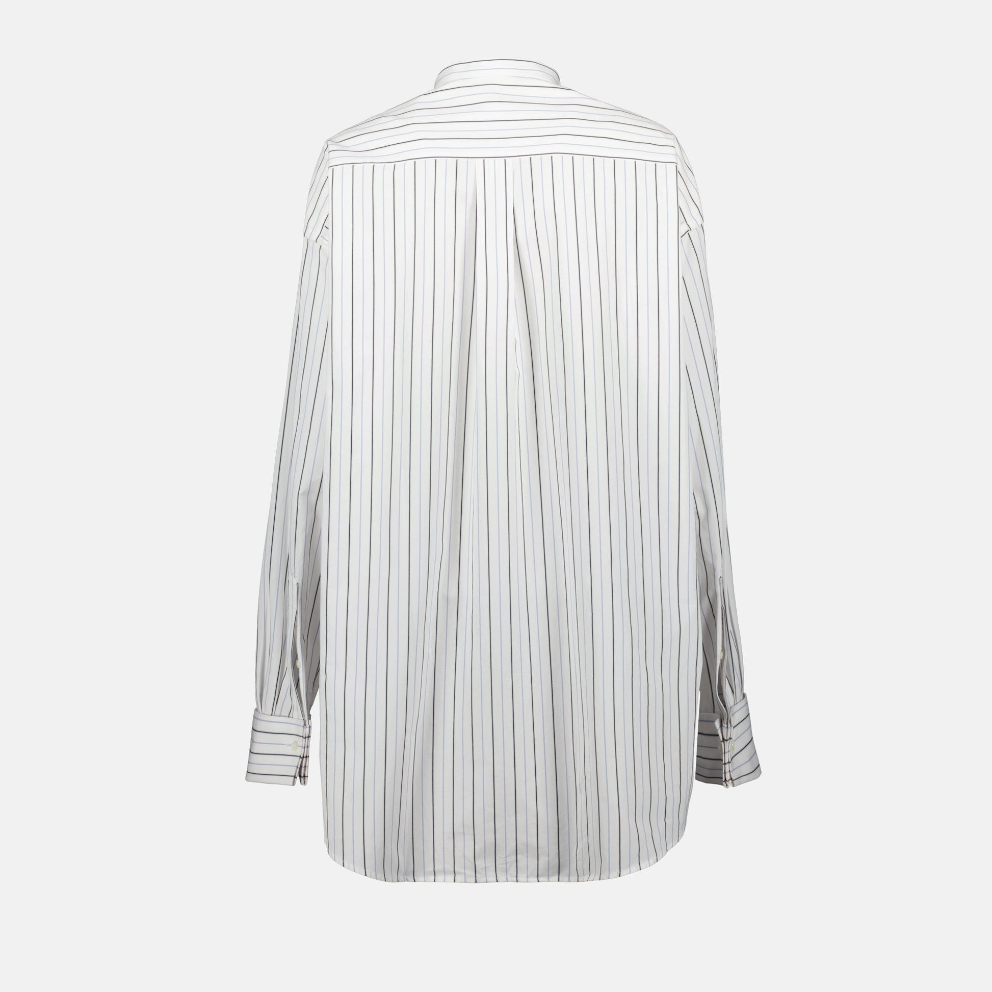 Oversized striped shirt by AMI Paris for women, made from cotton poplin. This piece is part of the Spring-Summer 2025 collection and features a classic collar and long sleeves.