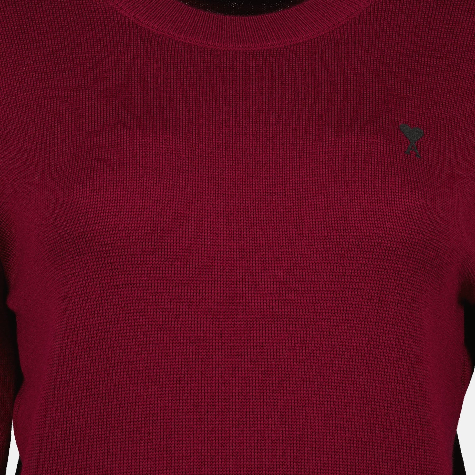 The Ami de Coeur Bordeaux sweater from the brand Ami Paris is a women's garment from the Autumn-Winter 2025 collection. It is made of wool with a round neck and long sleeves.