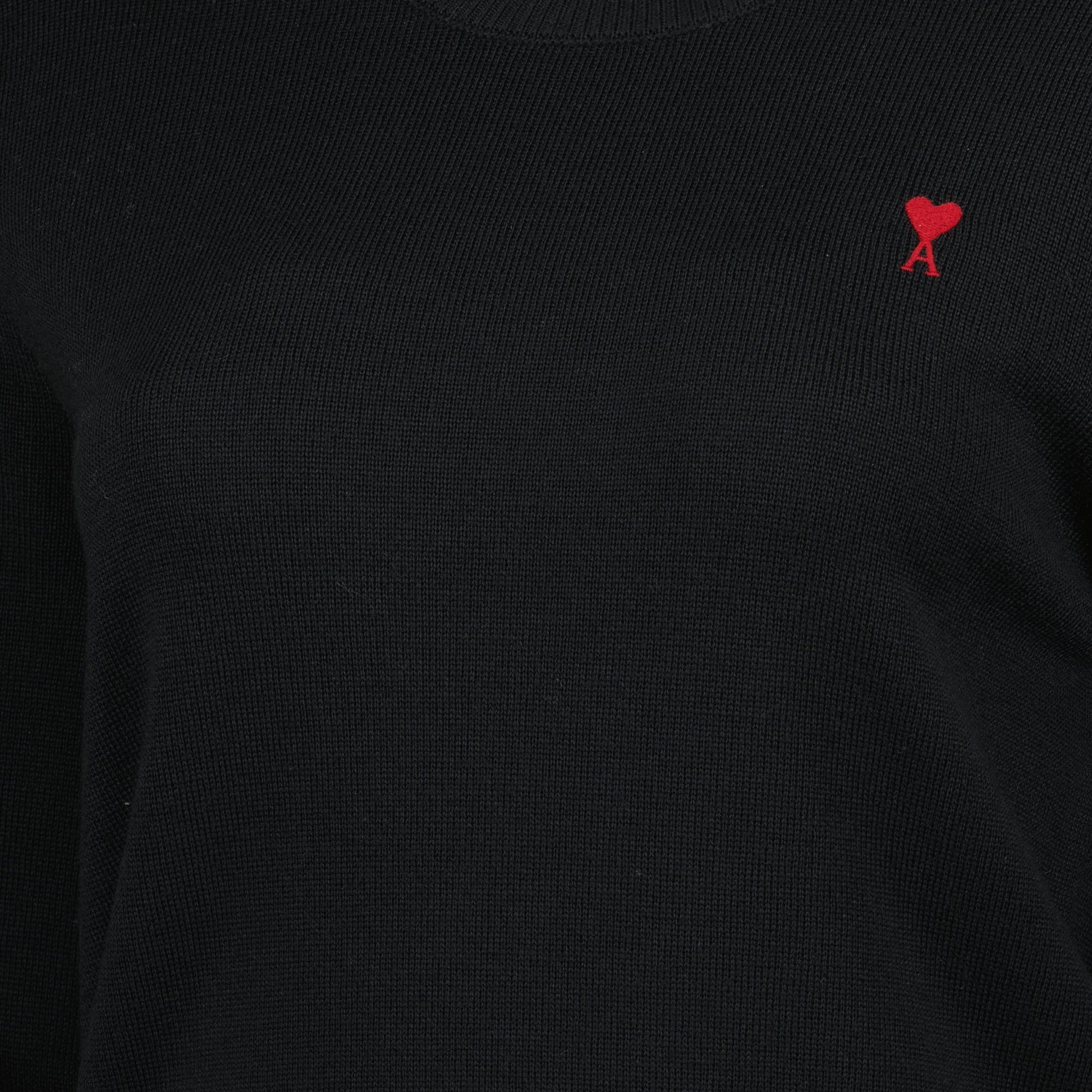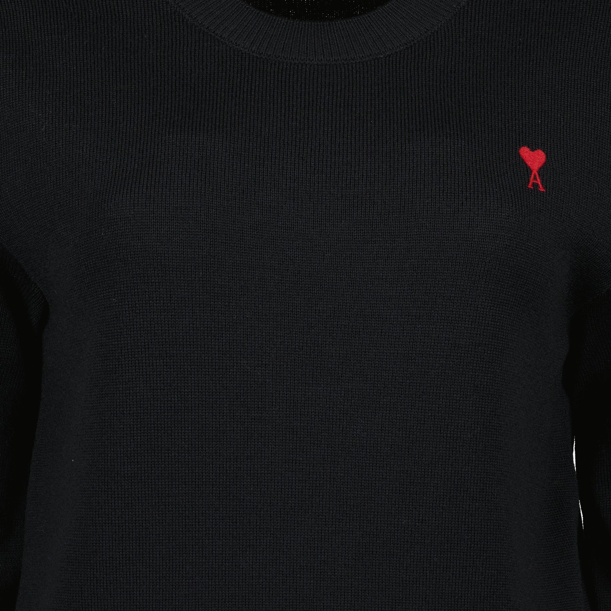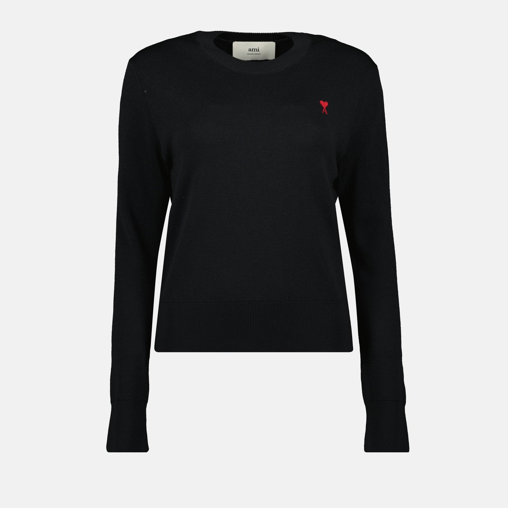 The black Ami de Coeur sweater from the brand Ami Paris is a women's garment from the Autumn-Winter 2025 collection. It is made of wool with a round neck and long sleeves.