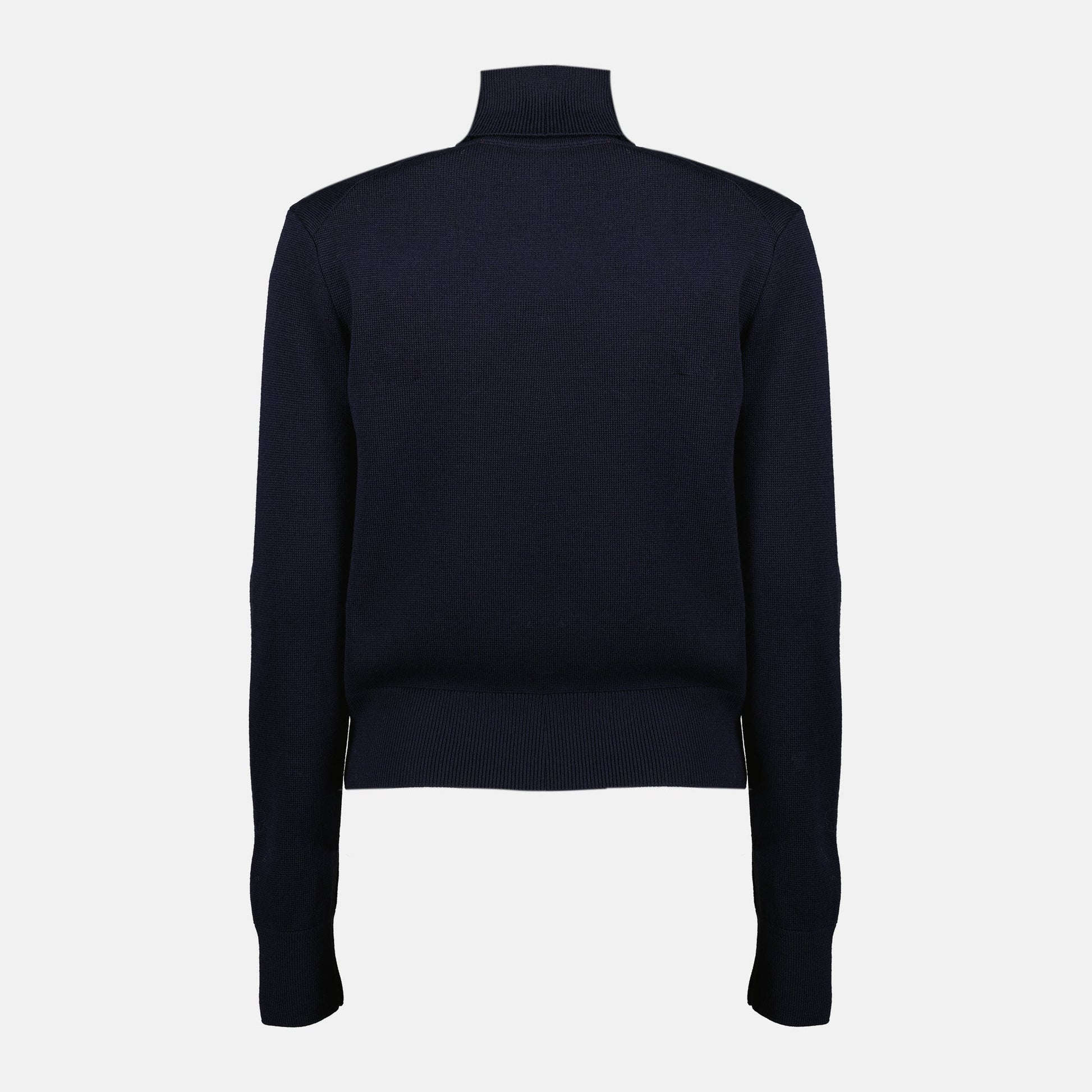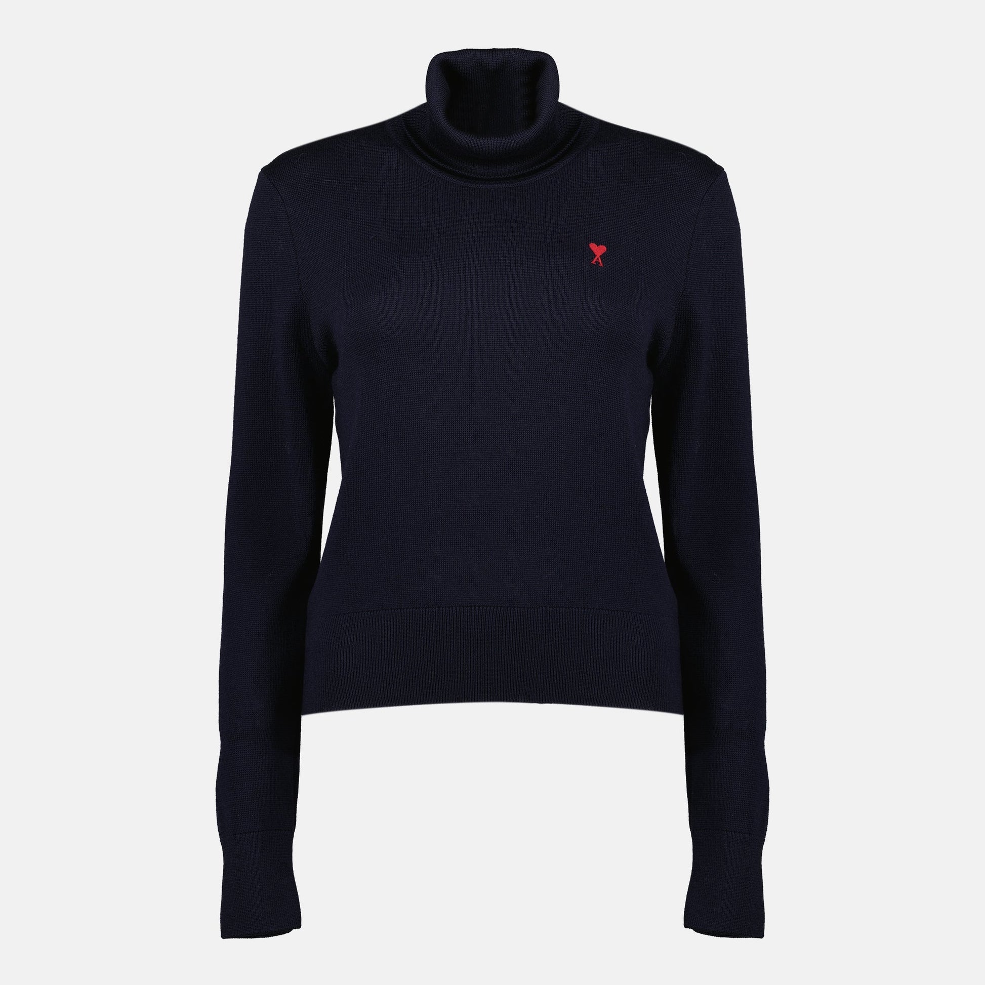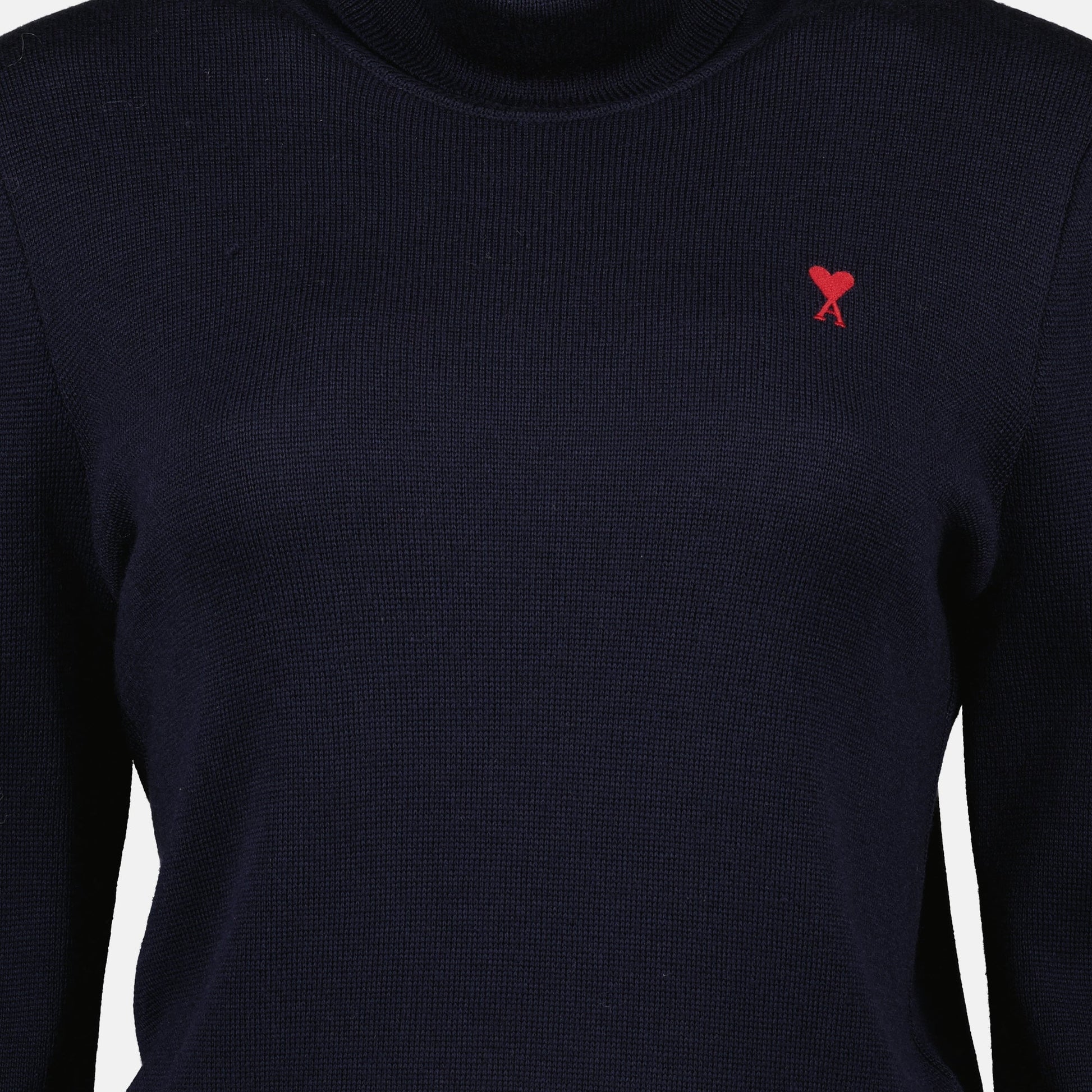 The navy blue Ami de coeur roll neck sweater from AMI Paris is a women's garment. It is part of the Autumn-Winter 2025 collection and is made from wool.