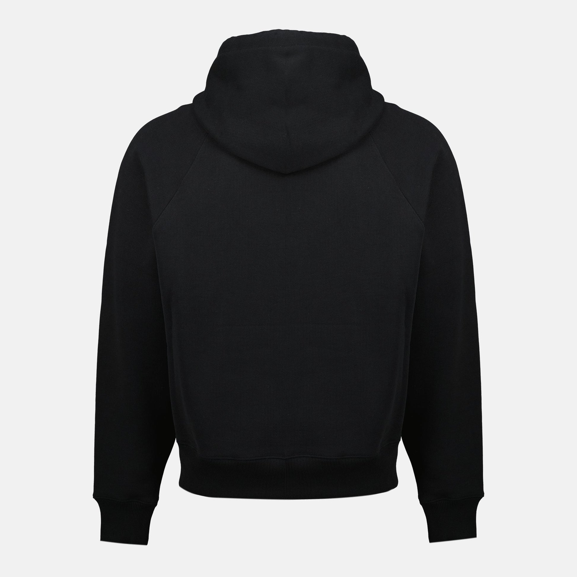 The black logo patch hoodie from AMI Paris is a unisex model from the Fall-Winter 2025 collection. Made from organic cotton, it features a comfortable and stylish design.