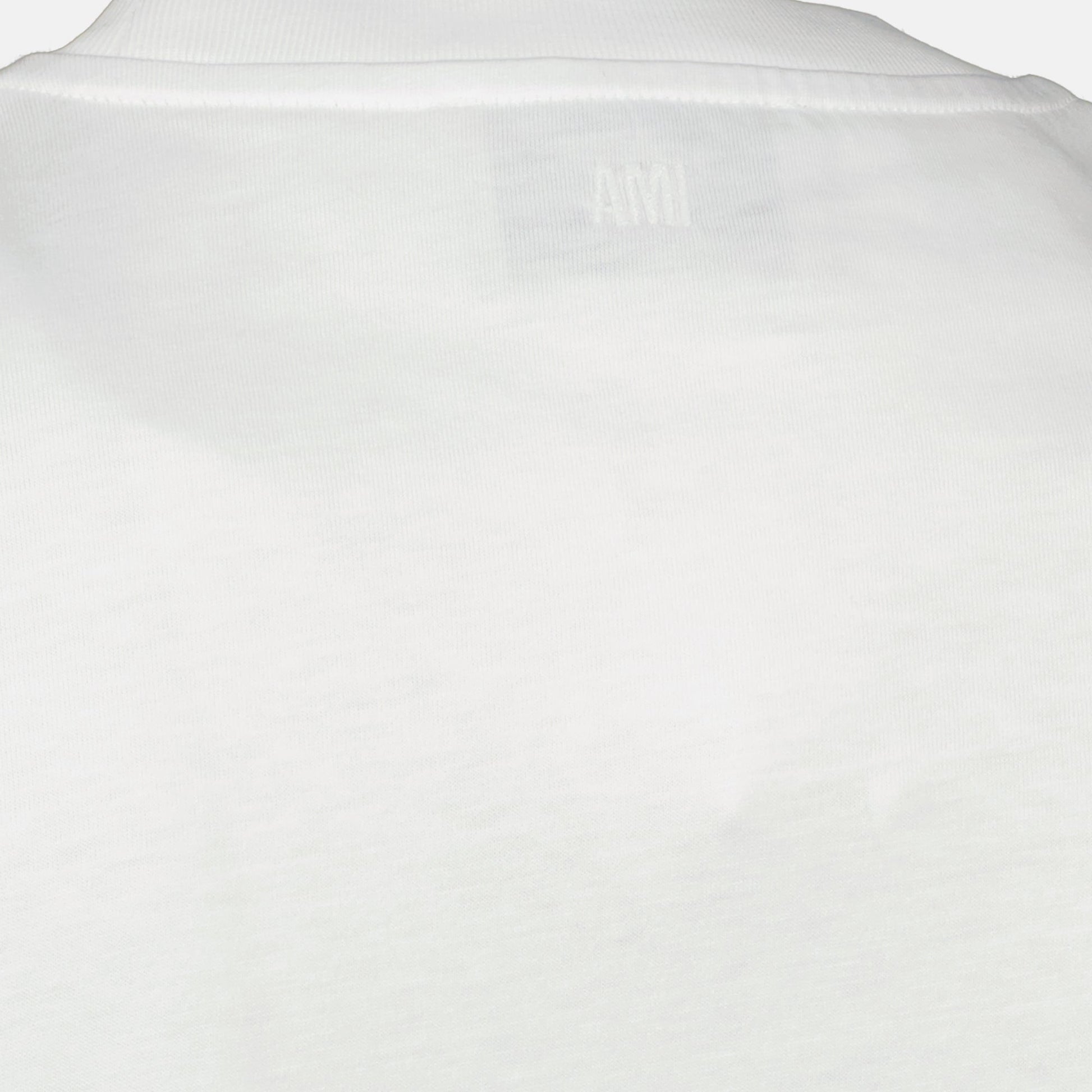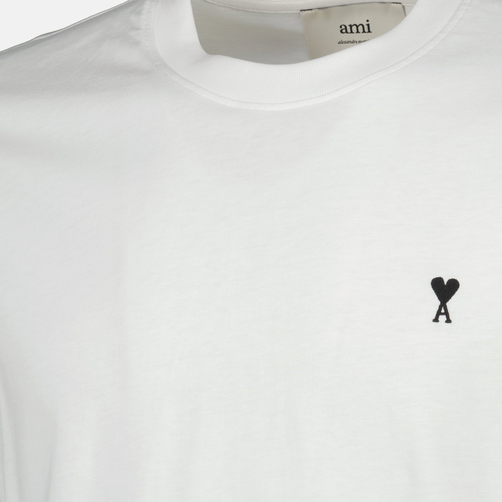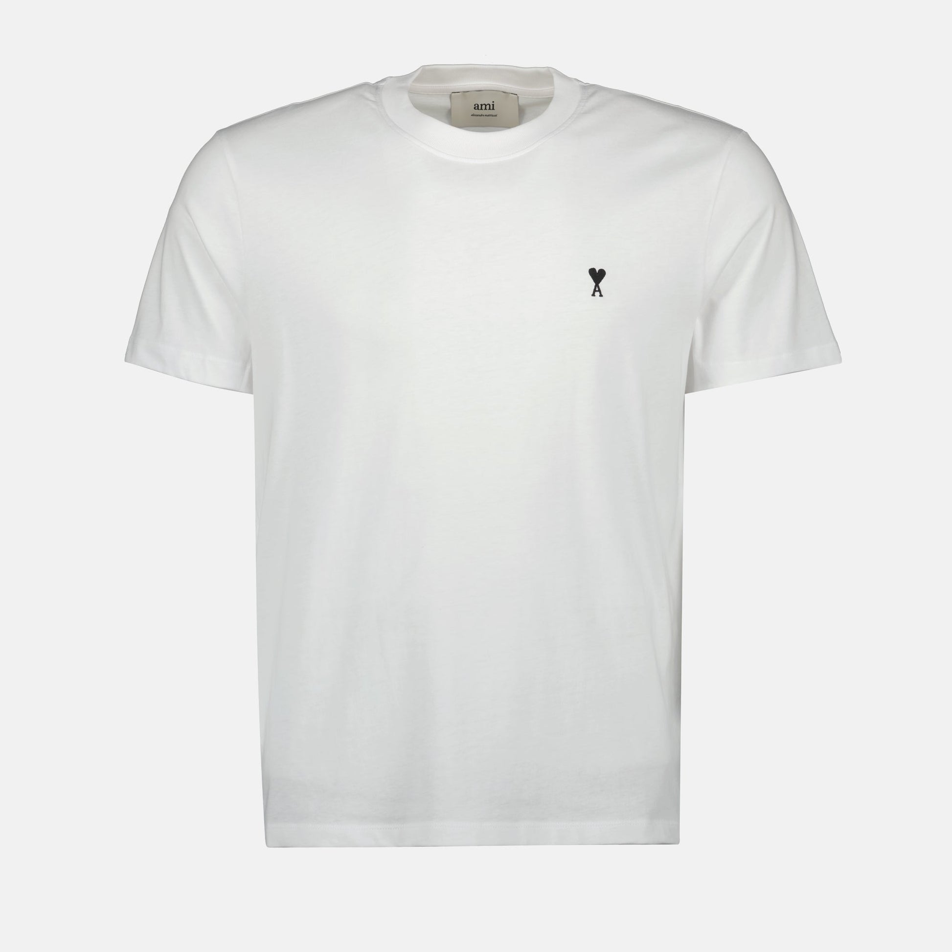 White Ami de coeur T-shirt from the Ami Paris brand for men. It is part of the Autumn-Winter 2025 collection and is made of cotton with an embroidered logo.