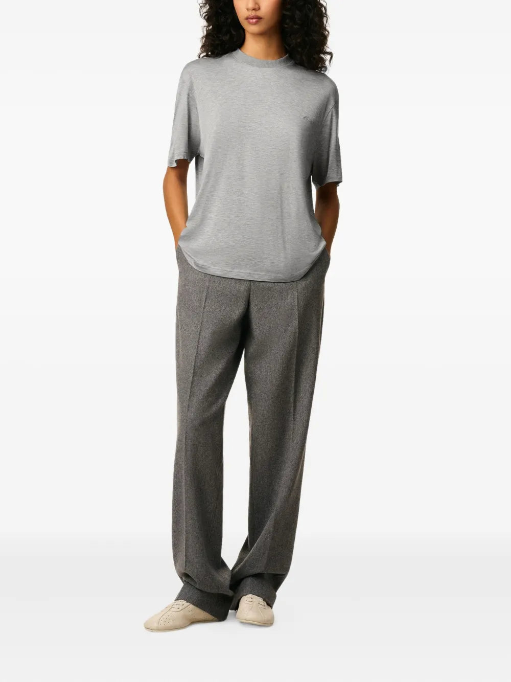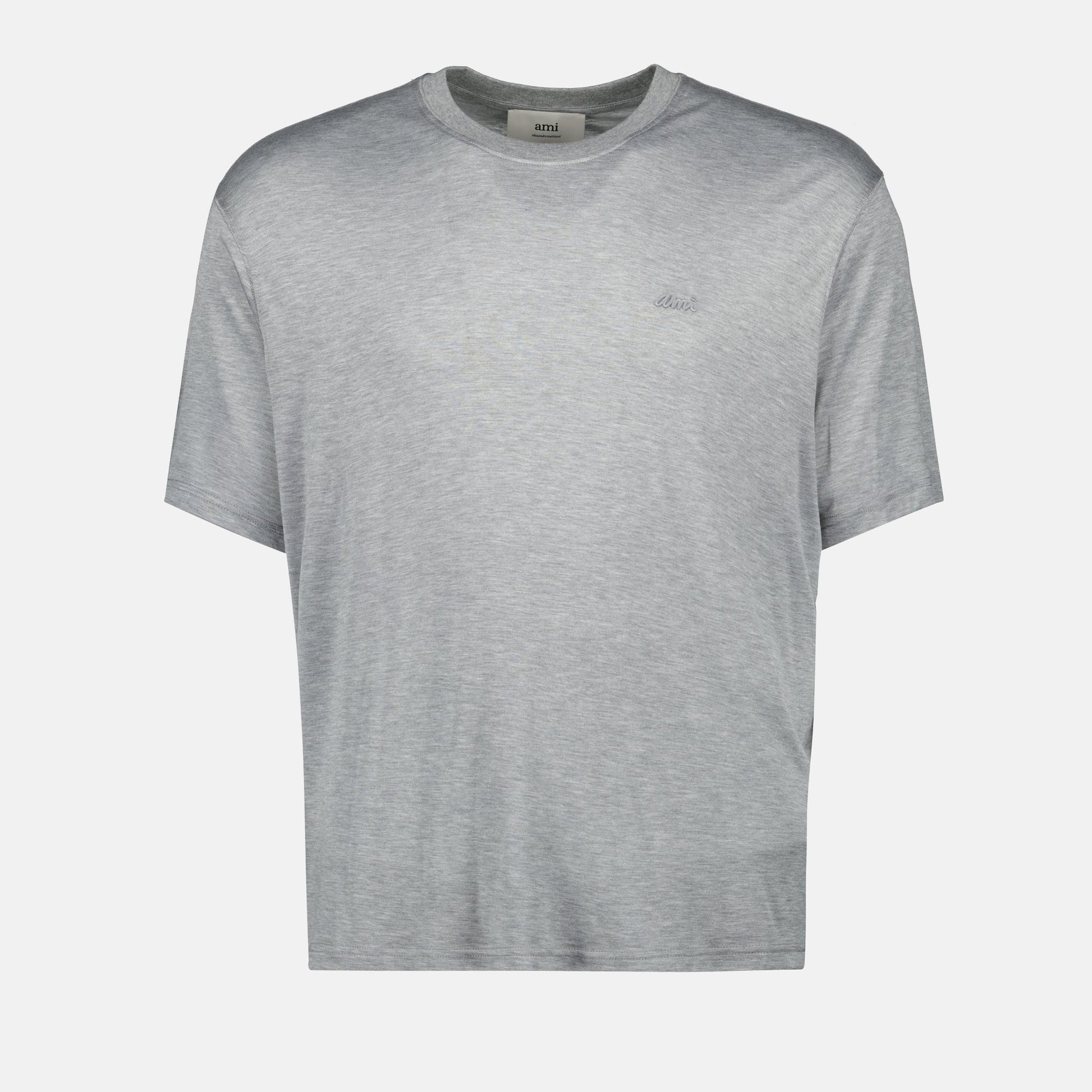 Gray embroidered T-shirt from the brand Ami Paris, made of viscose and silk. This unisex model is part of the Autumn-Winter 2025 collection.