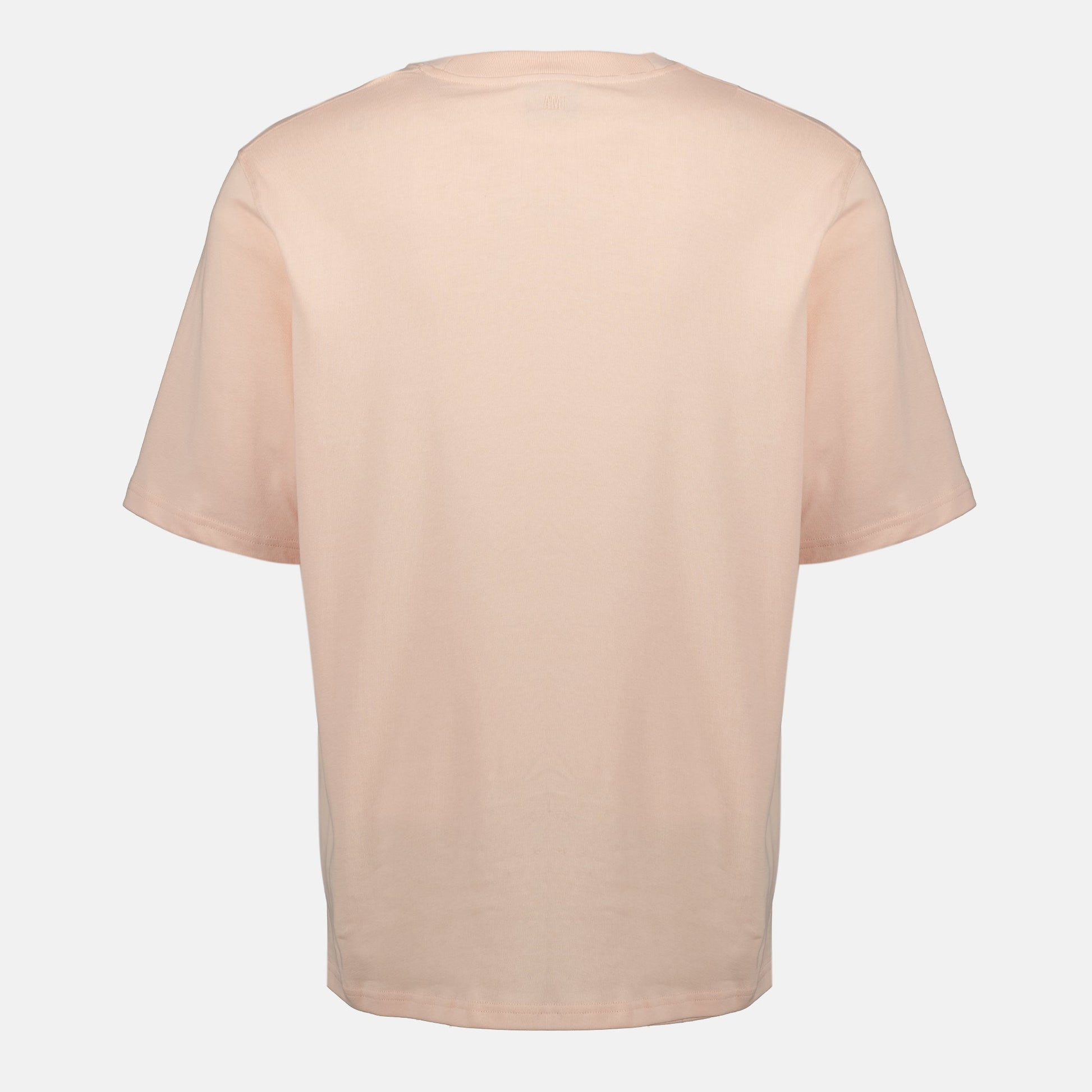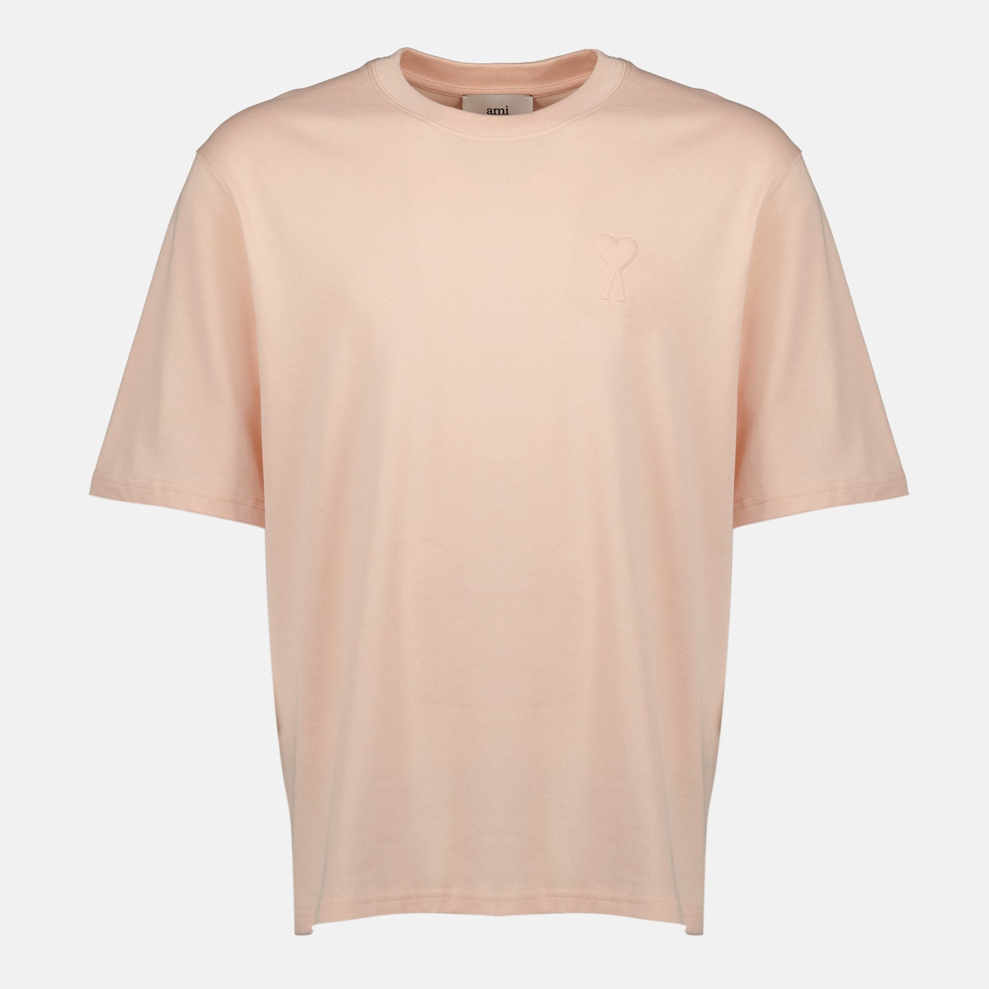 T-shirt logo rose clair d'AMI Paris, unisexe, conçu en coton avec un col rond et des manches courtes. Cette pièce fait partie de la collection Automne-Hiver 2025.