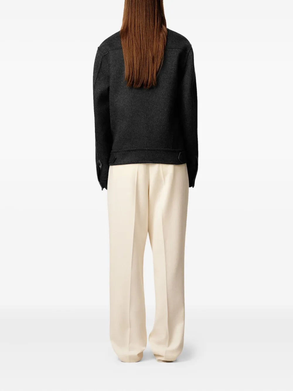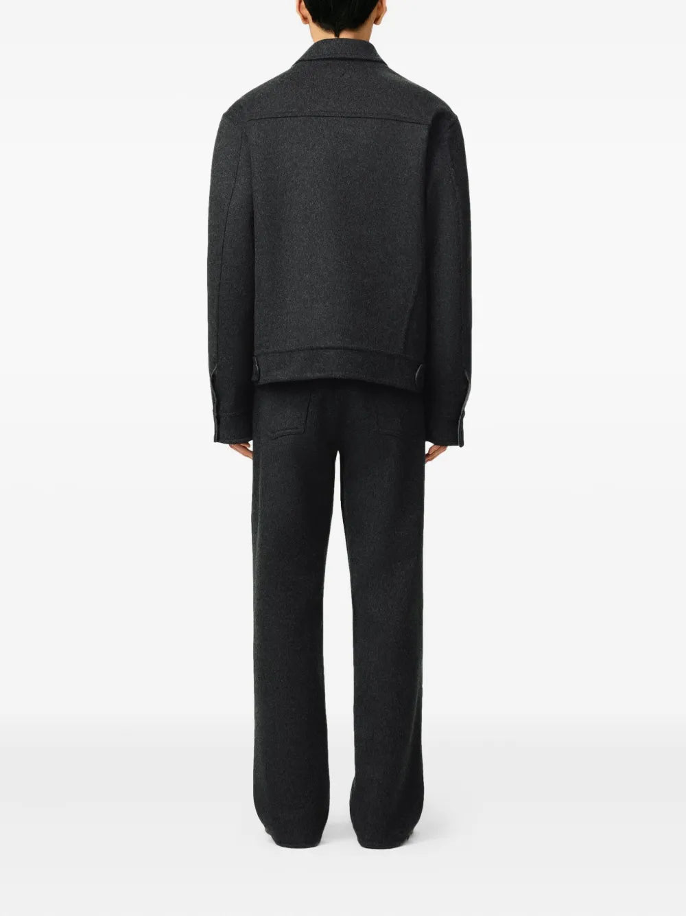 The Trucker Jacket in wool from AMI Paris is a unisex piece from the Autumn-Winter 2025 collection. It is crafted from silk and wool, offering an elegant style with refined details.