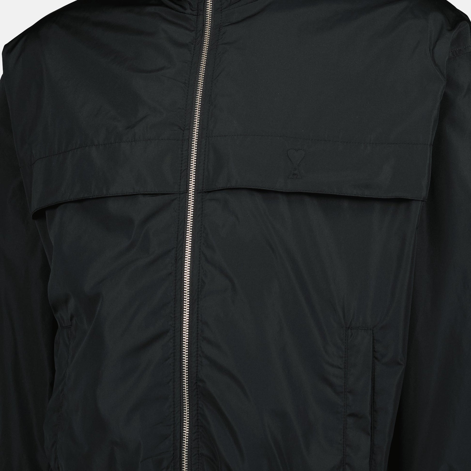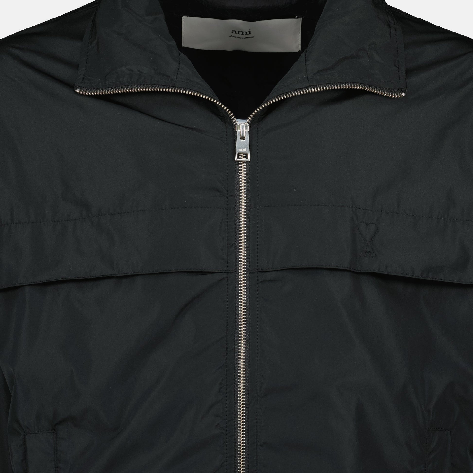 The black Ami de Coeur jacket by AMI PARIS is designed for men. Part of the Autumn-Winter 2025 collection, it combines modern style and comfort with its practical details.