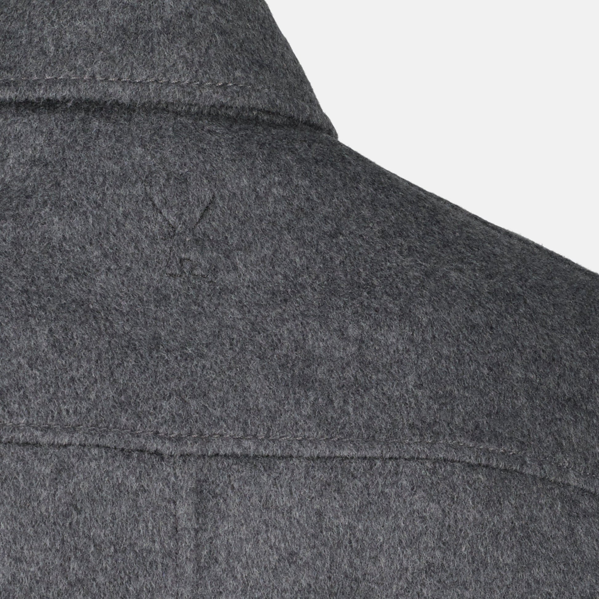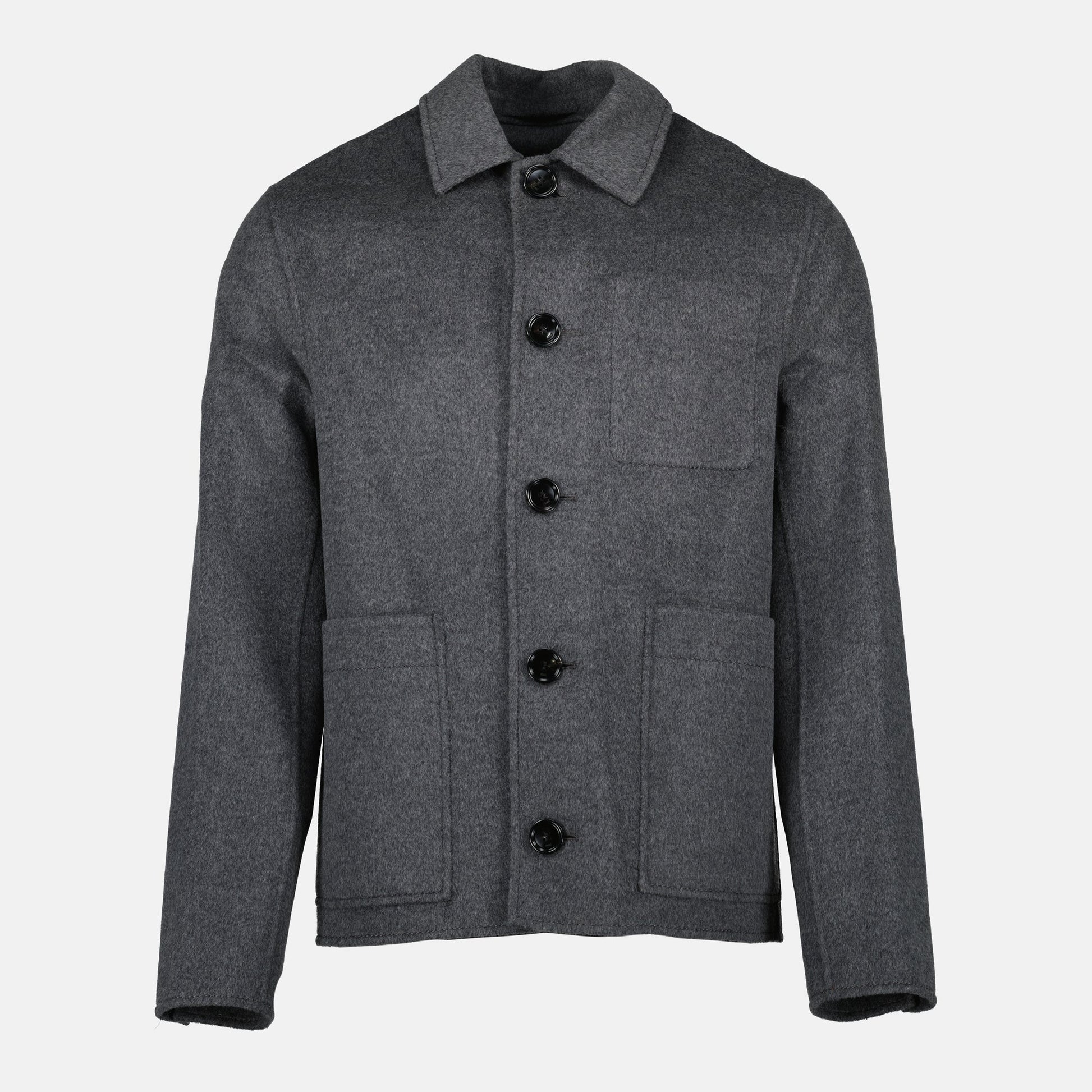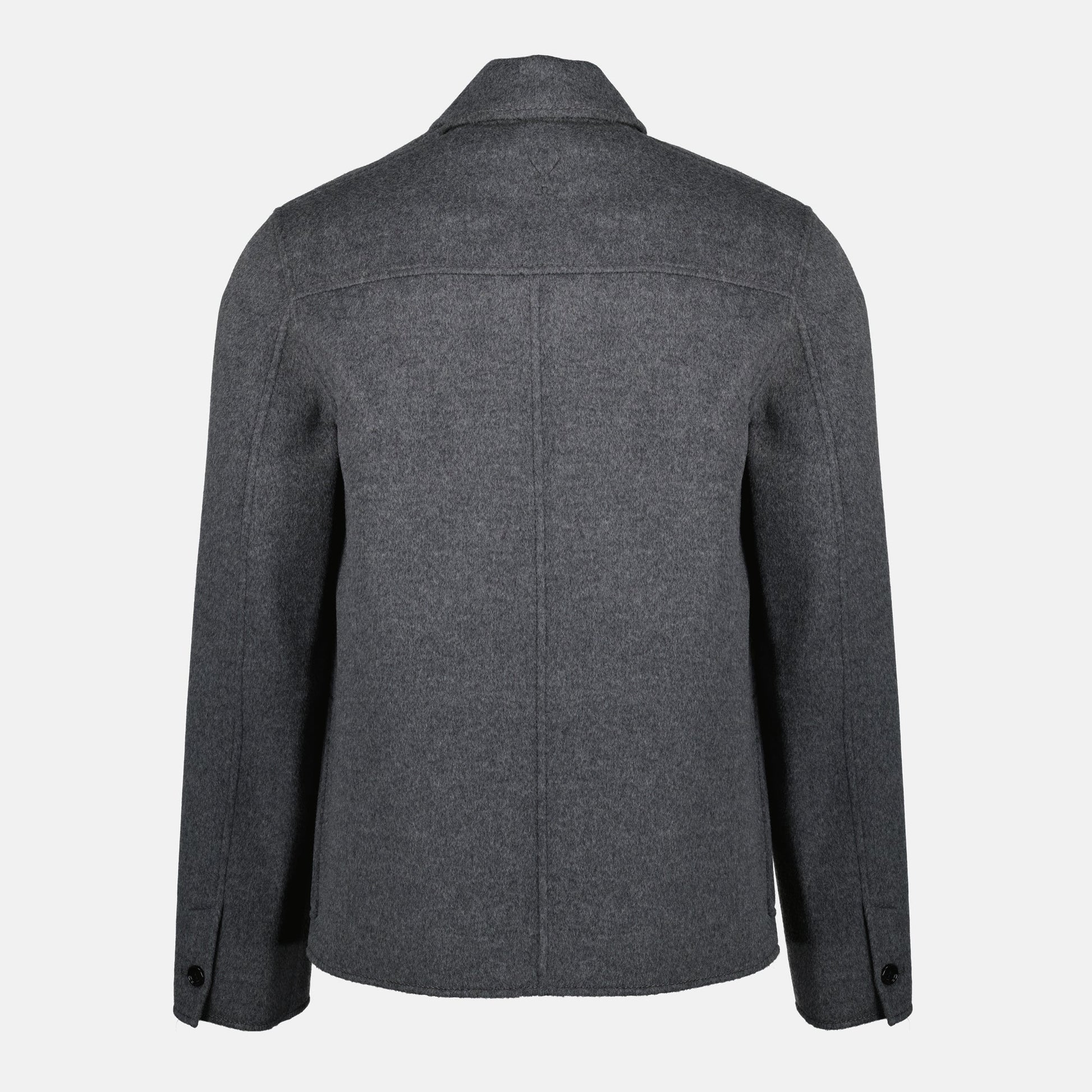 The gray wool bubble jacket from AMI Paris for men, part of the Autumn-Winter 2025 collection, combines elegance and comfort with its blend of wool and cashmere. It features a classic collar and long sleeves.