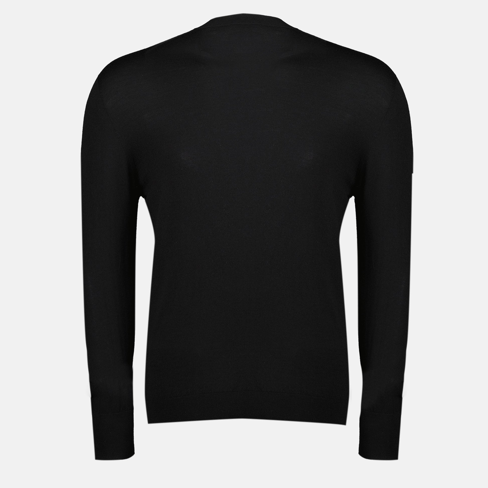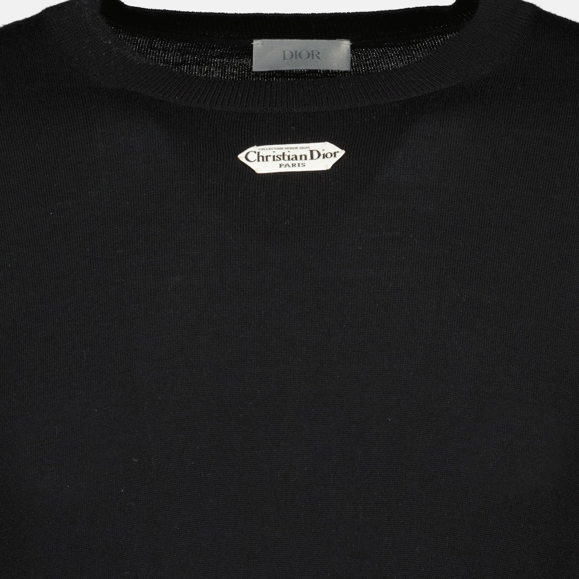 Black label sweater by Dior for men, made from wool. It is part of the Autumn-Winter 2025 collection and features a round neck and long sleeves.
