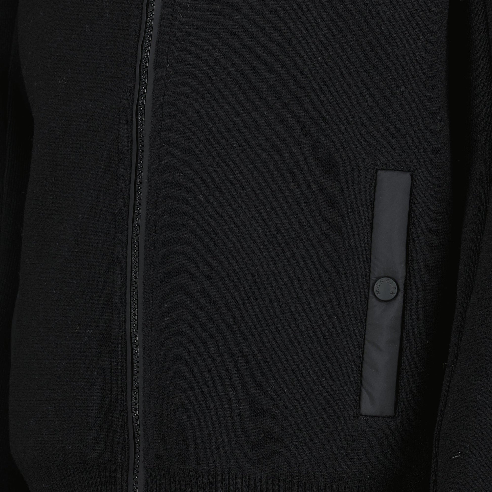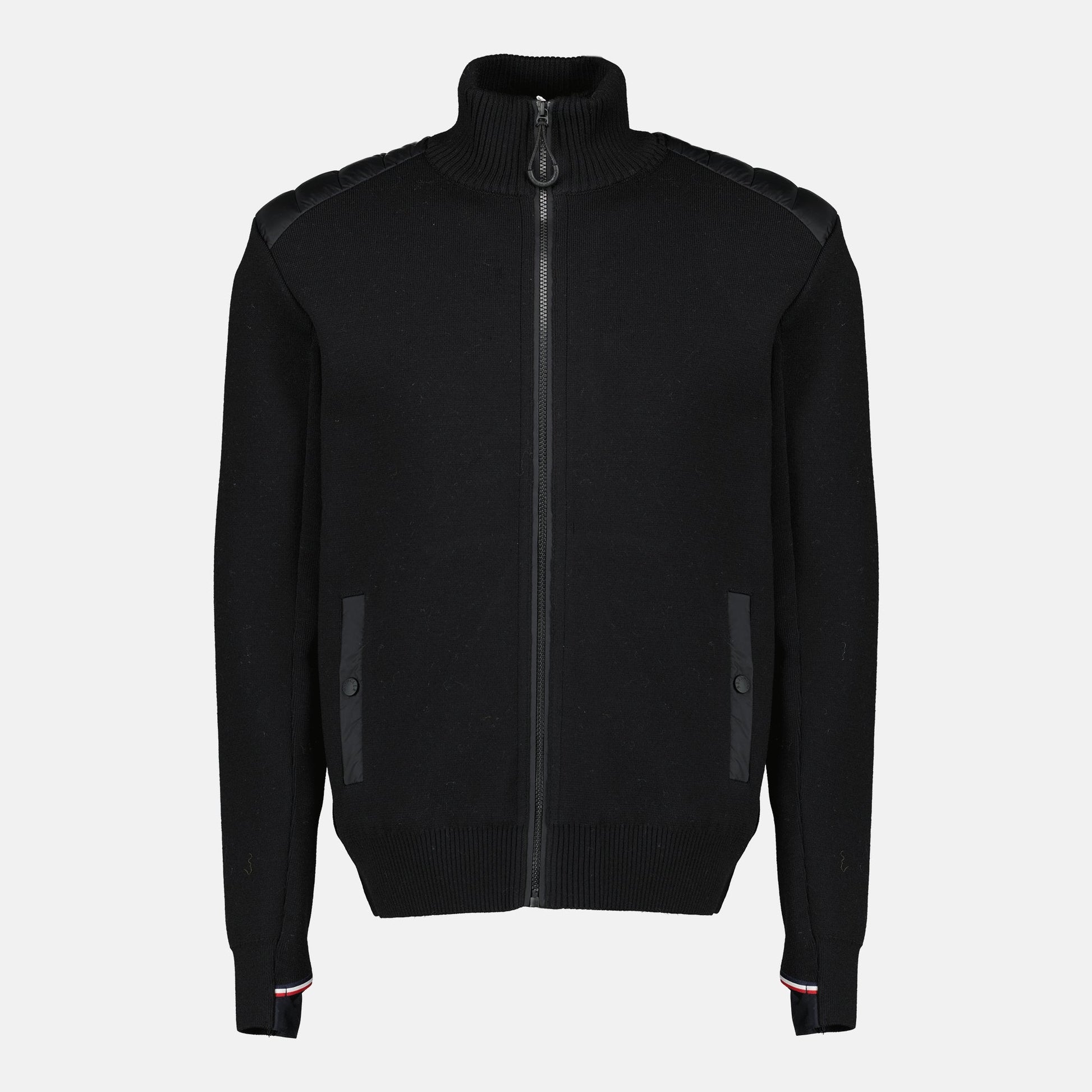 The black quilted zip-up cardigan in wool by Moncler Grenoble is designed for men. It is part of the Autumn-Winter 2025 collection, combining comfort and functionality.