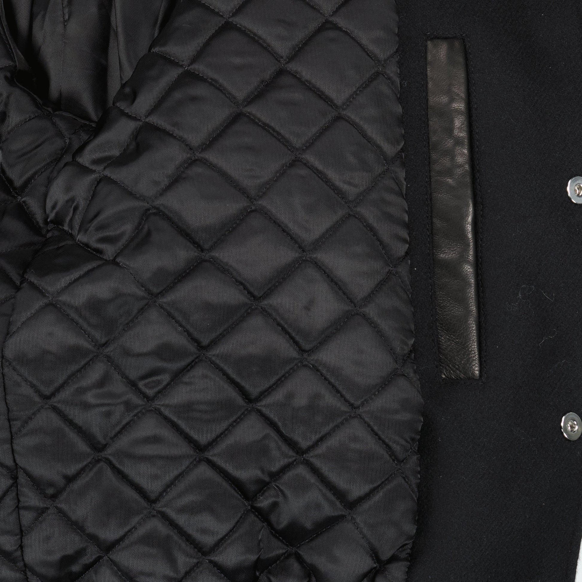 The black two-tone bomber from Givenchy is designed for men. It is part of the Spring-Summer 2026 collection, combining lamb leather and wool.