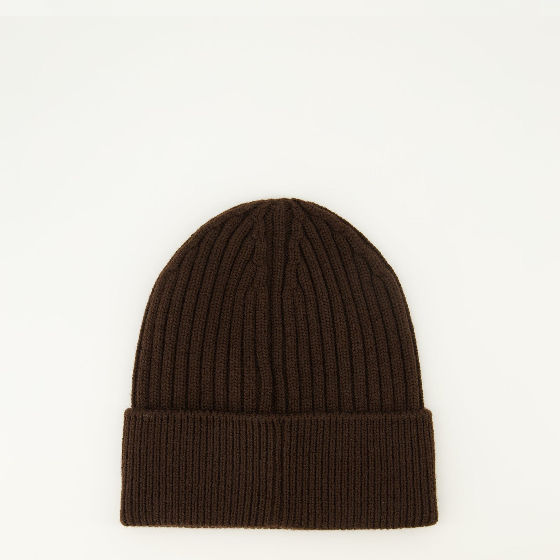 Brown wool beanie from the brand Moncler Grenoble, designed for men. It is part of the Autumn-Winter 2025 collection and is available in several colors.