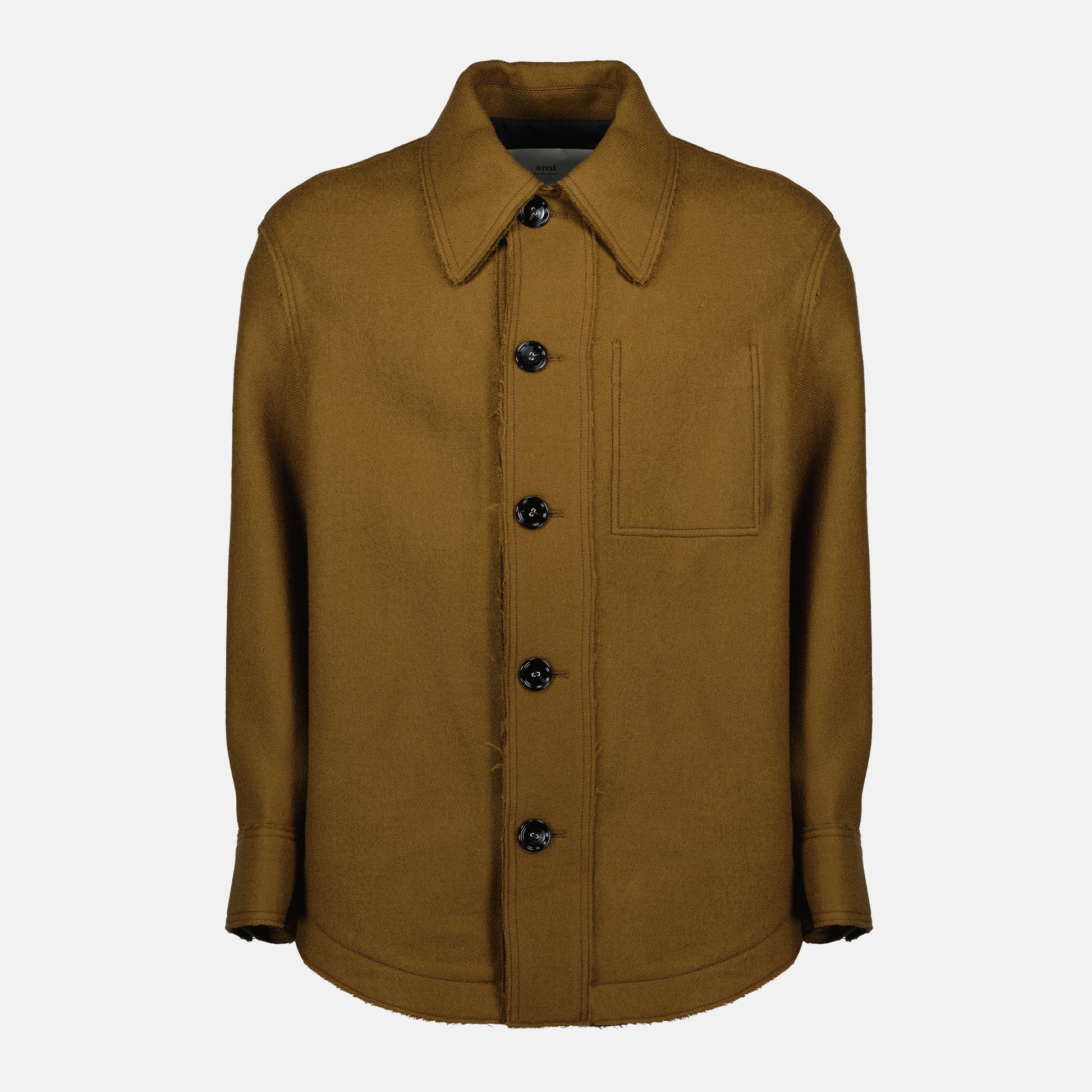 Brown wool shirt jacket from AMI Paris, unisex model. This piece is part of the Autumn-Winter 2025 collection and features a classic and functional design.