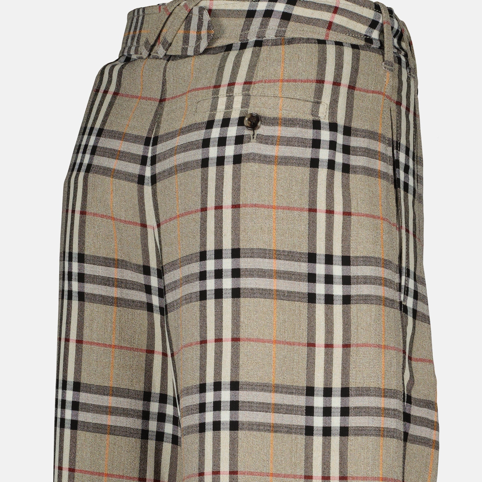 The beige Check pants from Burberry are a women's item from the Autumn-Winter 2025 collection. They feature a straight cut, a high waist with a belt, and a check pattern.