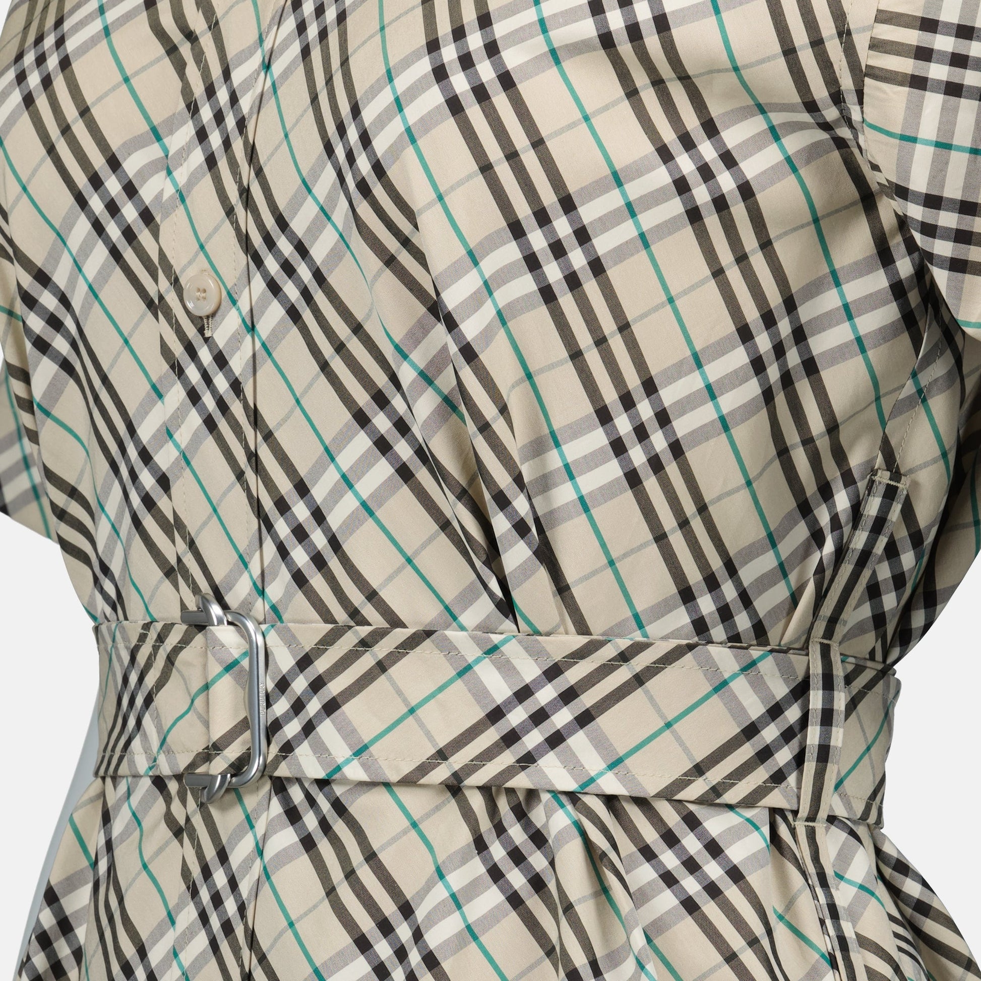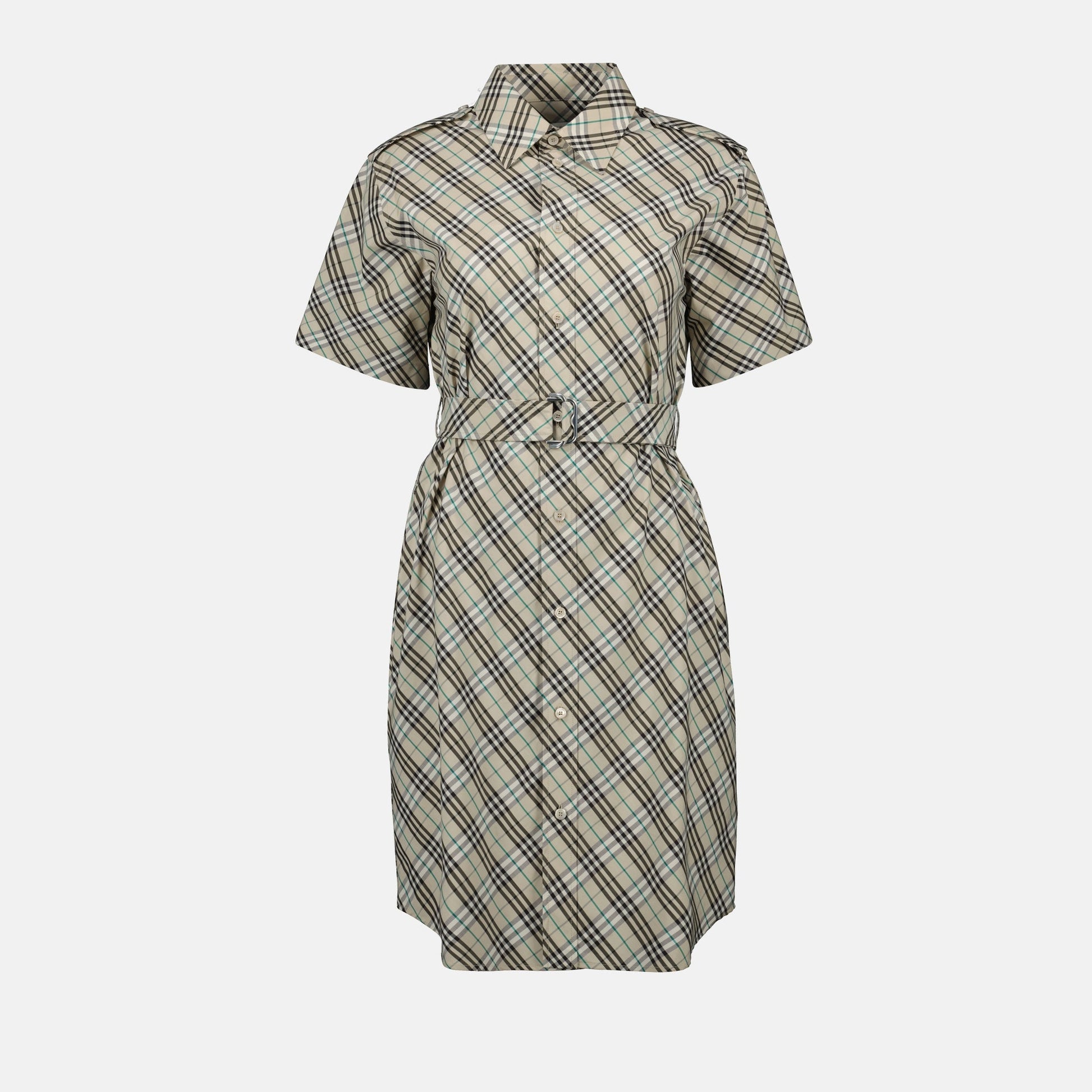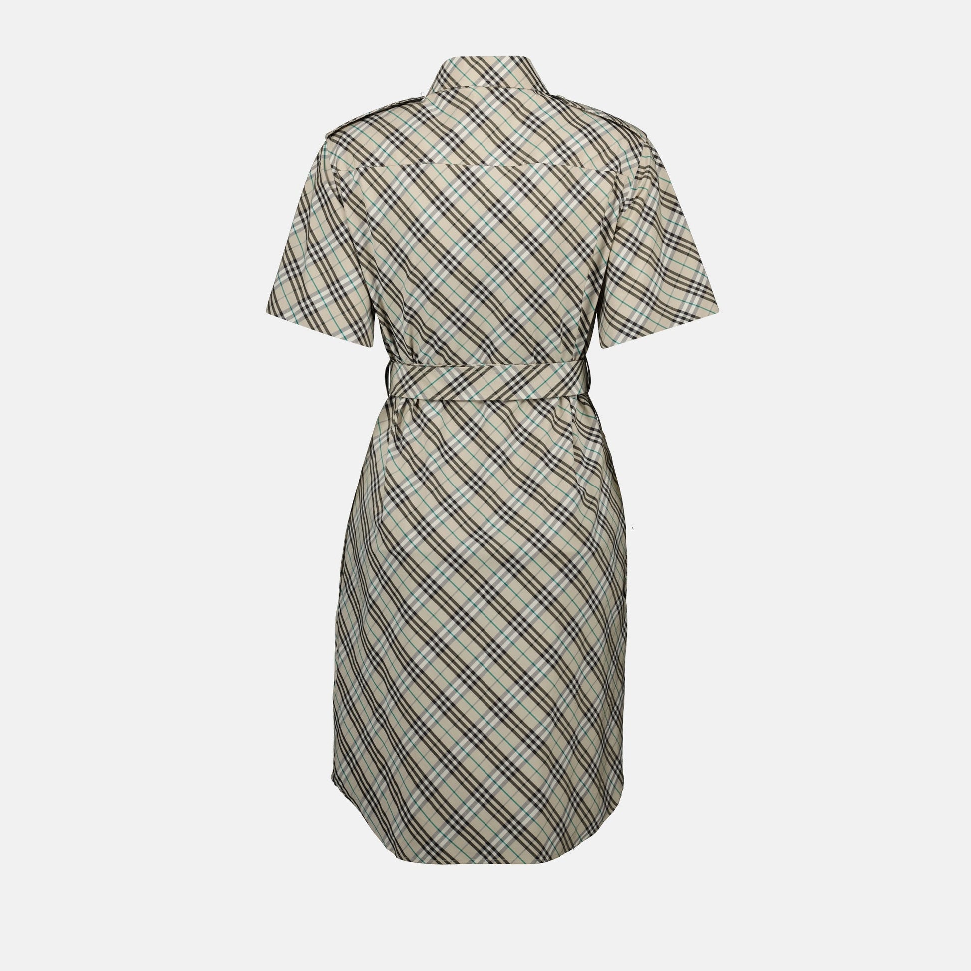 Check plaid dress in cotton from Burberry for women, crafted in beige cotton with a fitted cut. This piece is part of the Spring-Summer 2025 collection and features elegant details.