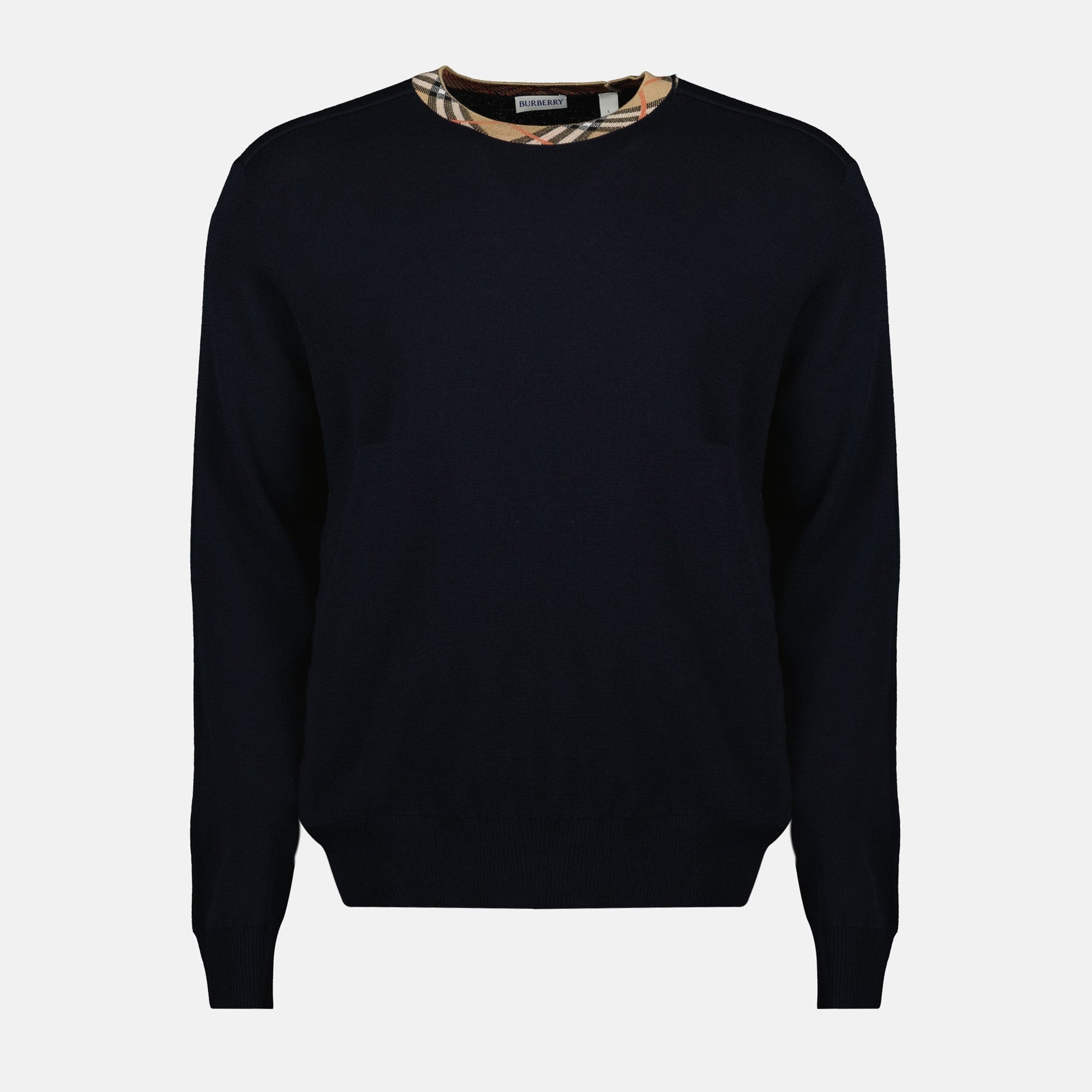 The black Check wool sweater from Burberry is a men's garment. It is part of the Autumn-Winter 2025 collection and features an elegant design with a check collar.