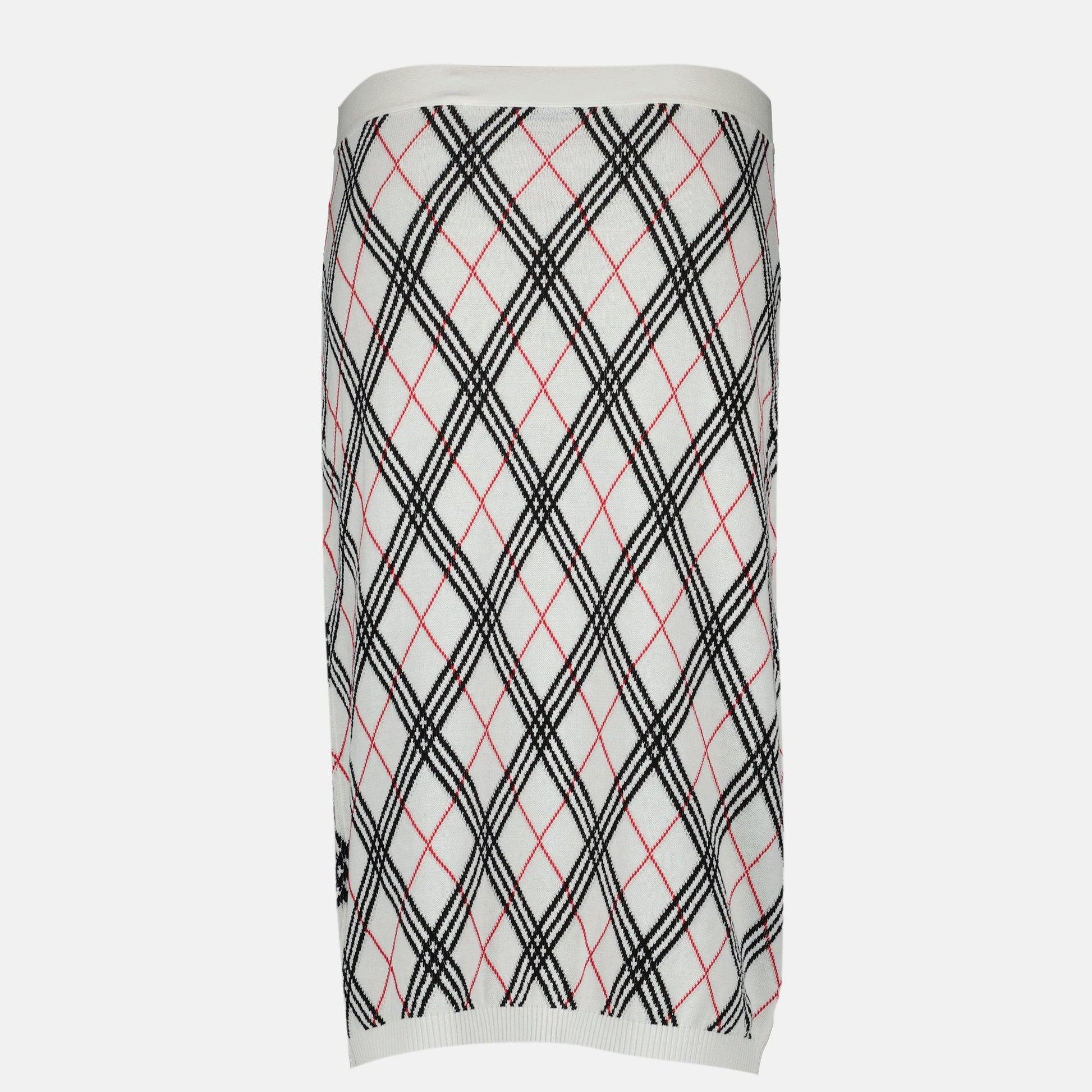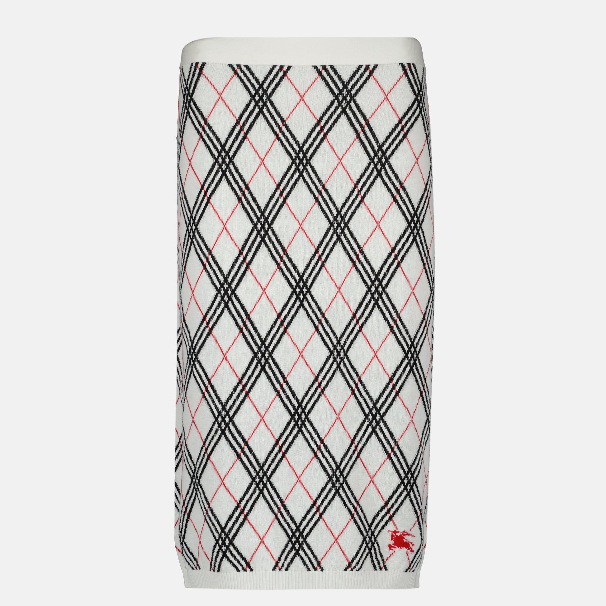White Midi Check skirt from Burberry for women, crafted in cotton with an embroidered logo and a check print. This piece is part of the Autumn-Winter 2025 collection.