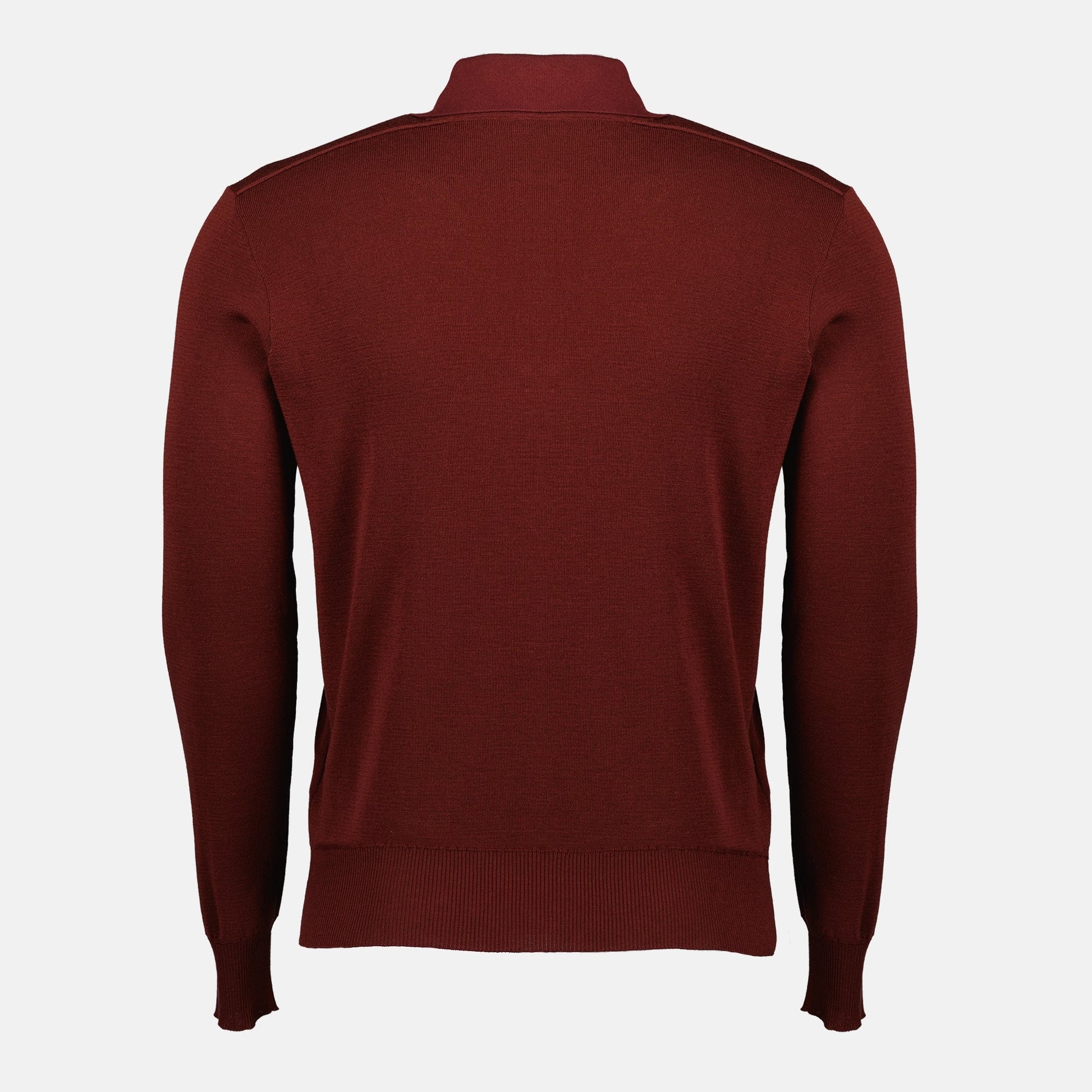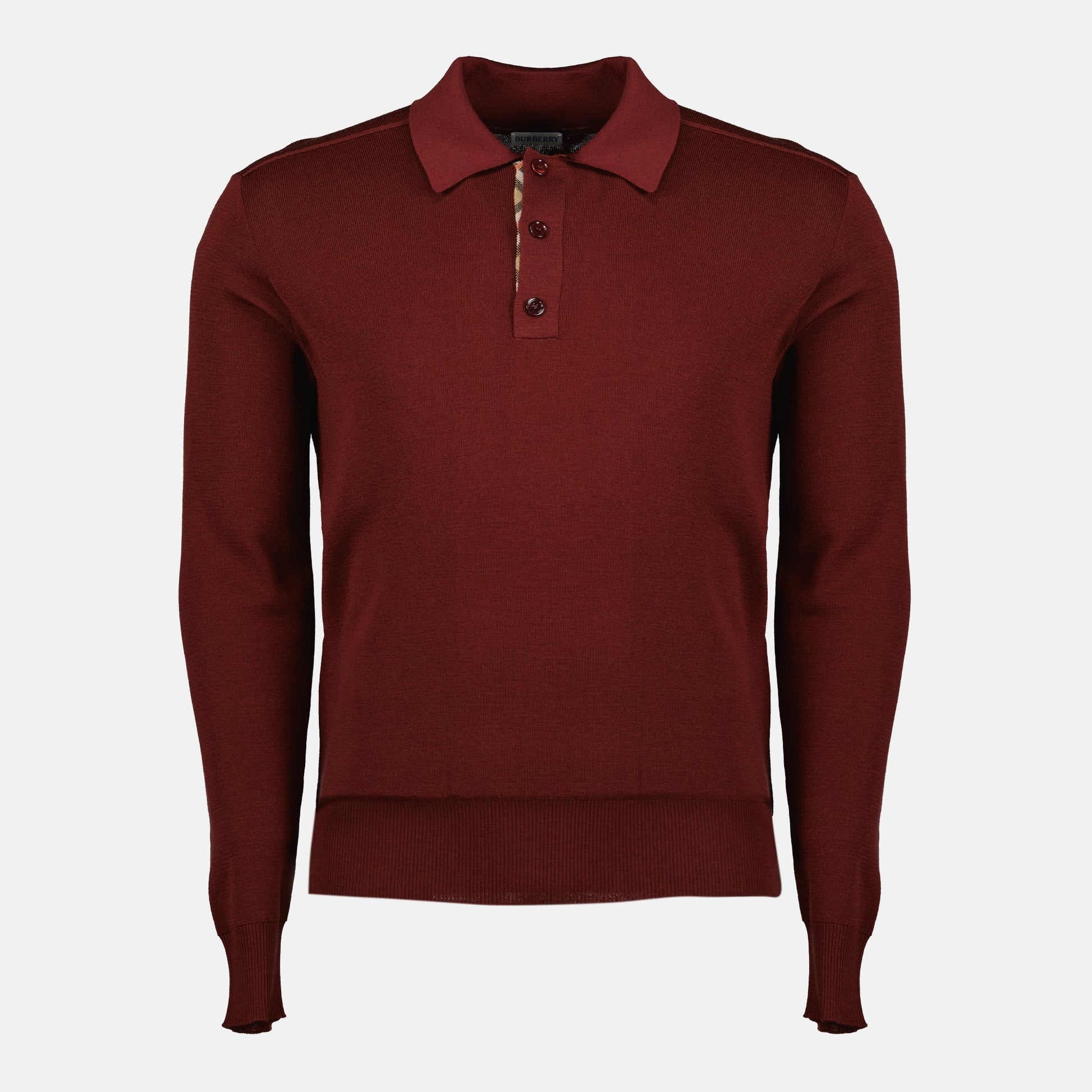 Red long sleeve polo by Burberry for men, made from wool with a classic collar and Burberry Check details. It is part of the Autumn-Winter 2025 collection.