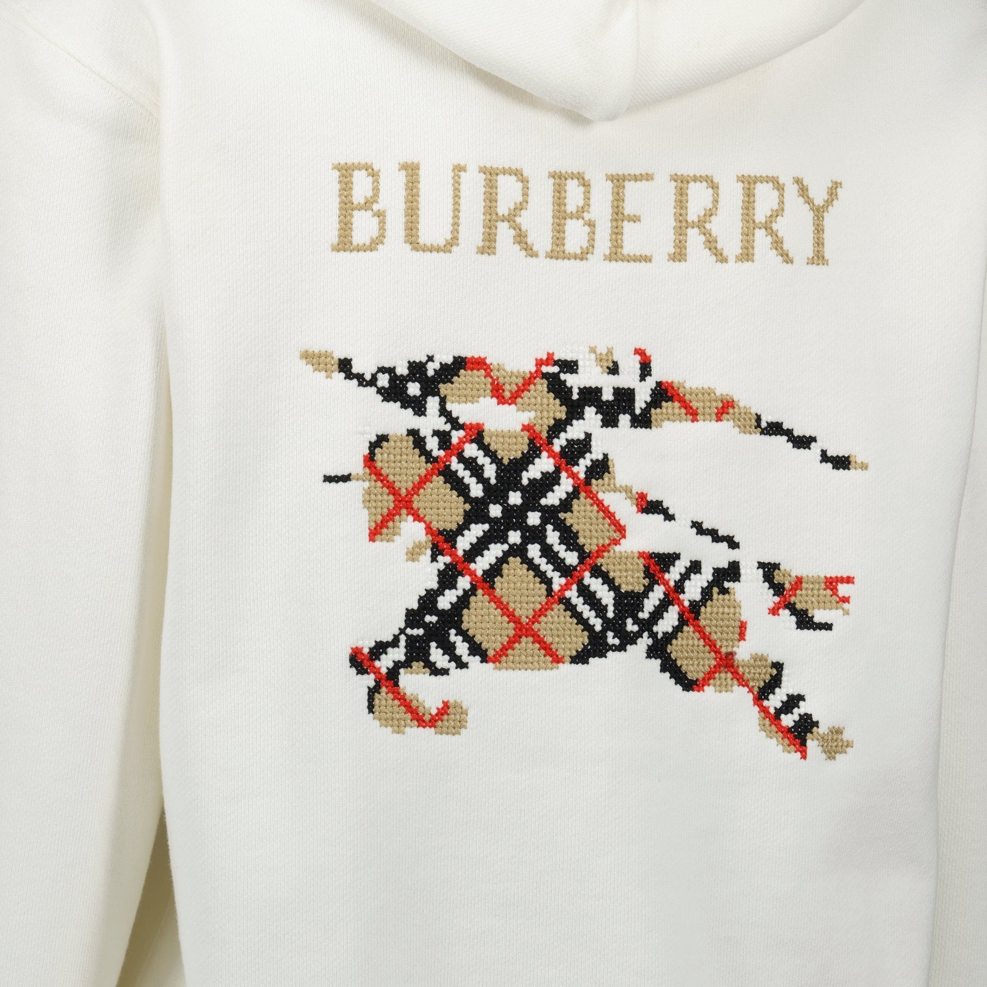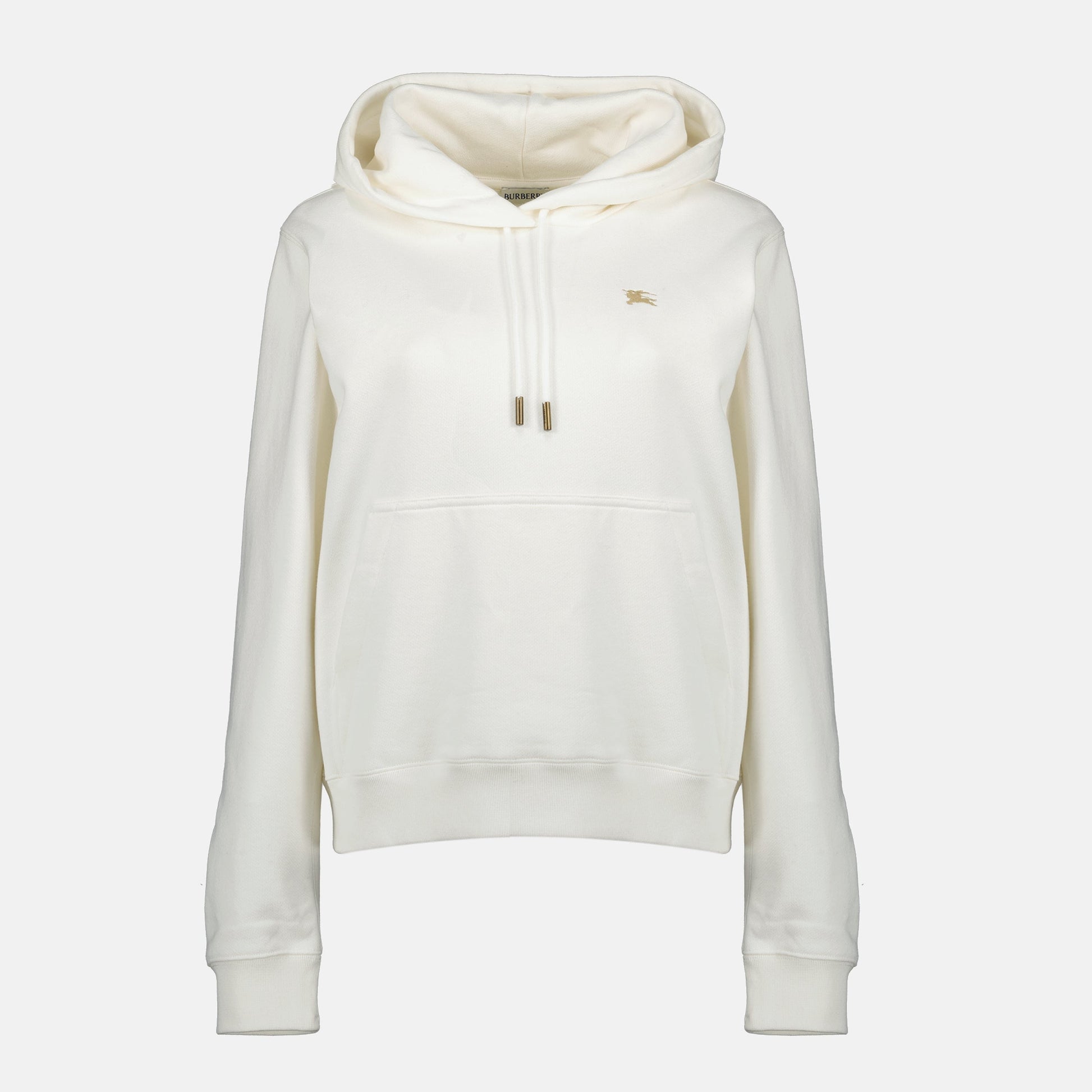 Le sweat à capuche Knight blanc de Burberry est un vêtement pour femme de la collection Automne-Hiver 2025. Il présente un design élégant avec un logo brodé et une coupe droite.
