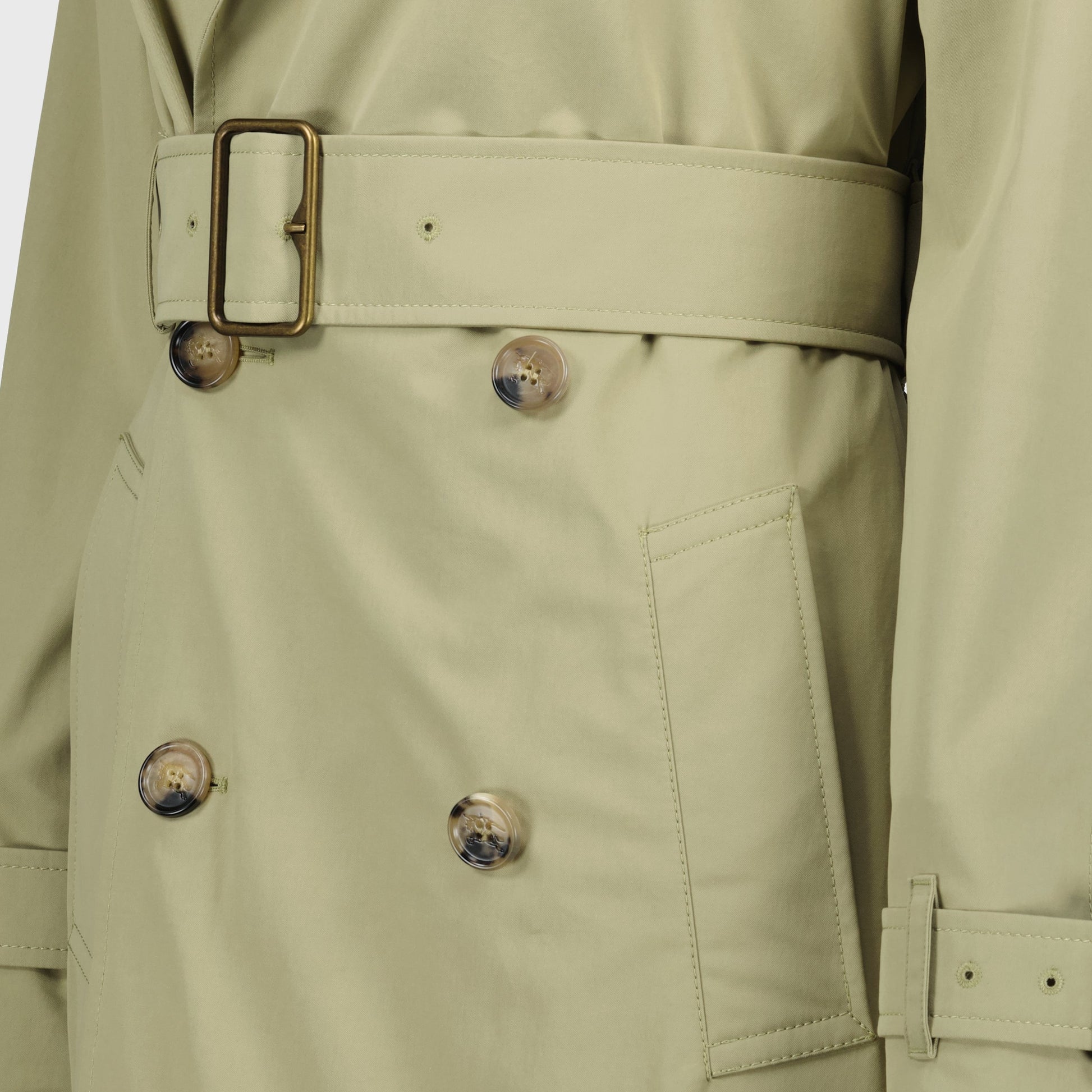 Beige long trench coat by Burberry for women, from the Spring-Summer 2025 collection. Made from cotton gabardine, it features a fitted cut and iconic details of the brand.