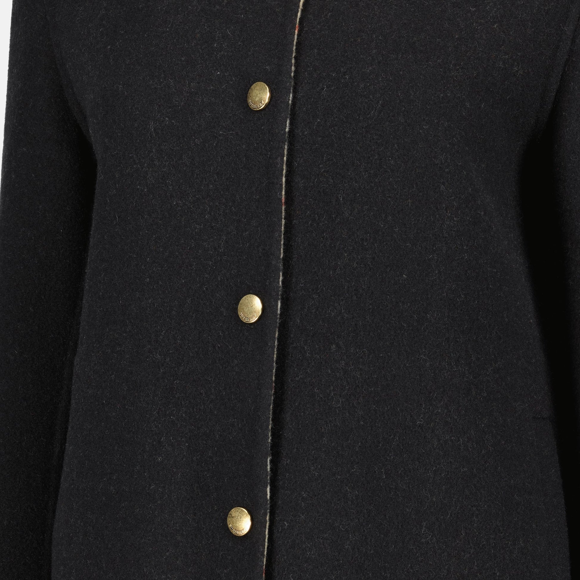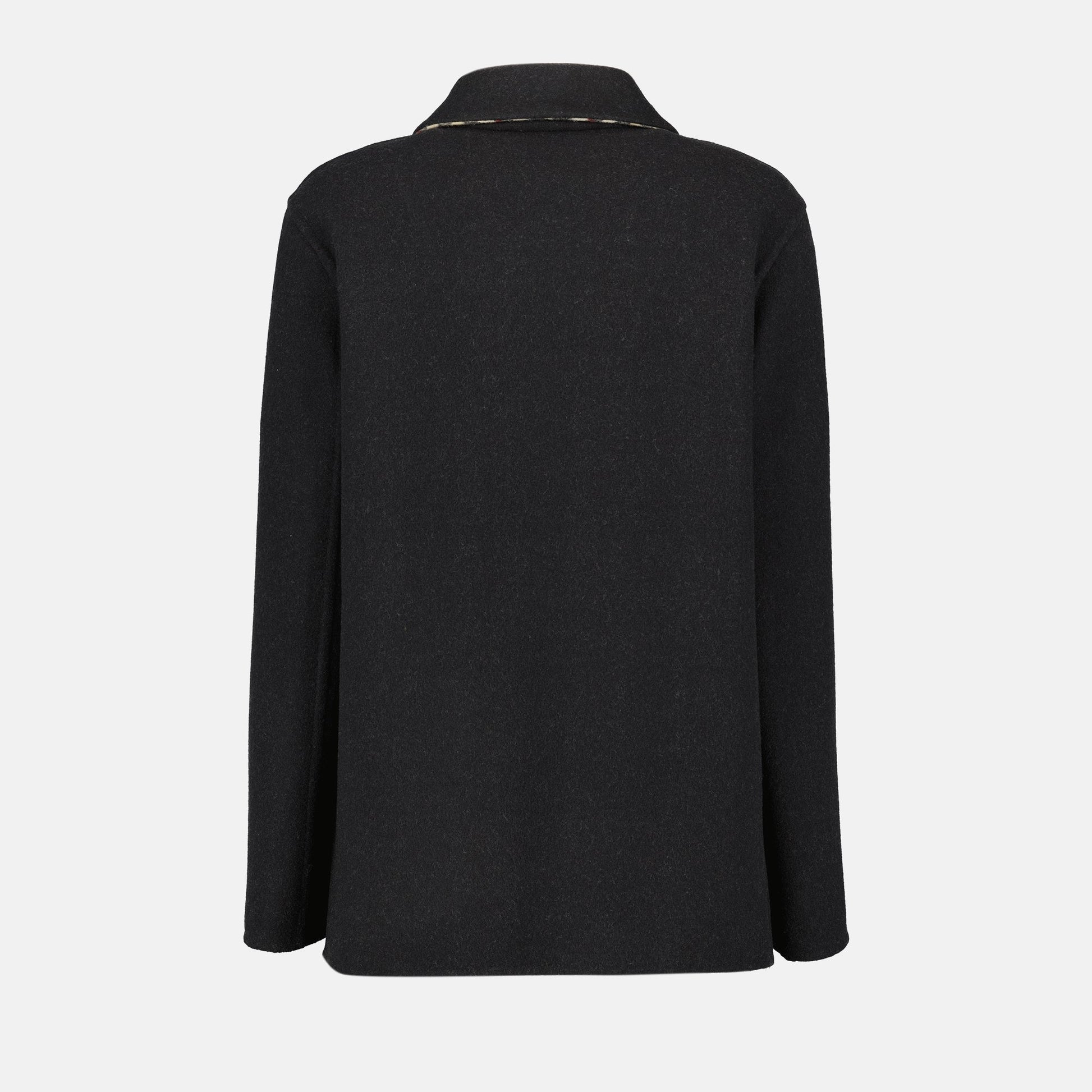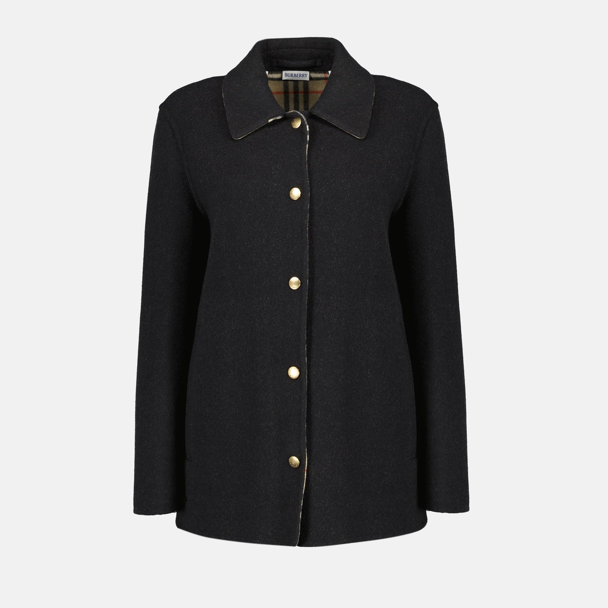 The gray wool jacket from Burberry is a women's garment from the Autumn-Winter 2025 collection. It features a classic collar, long sleeves, and an elegant design.