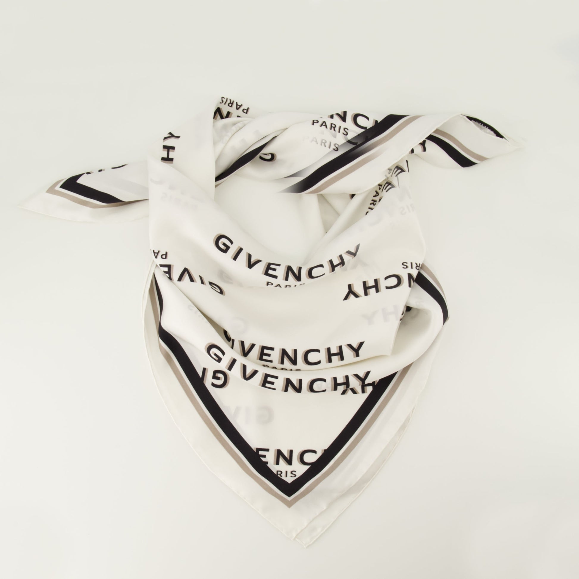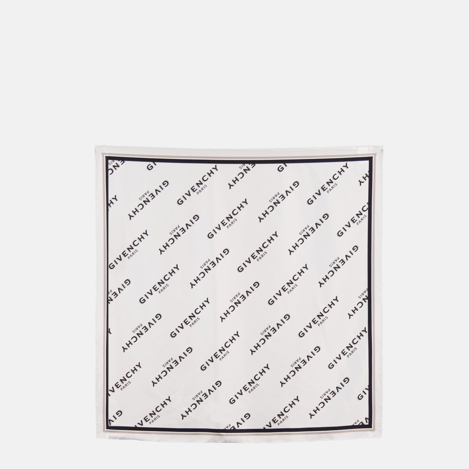 The white Shadow silk scarf from Givenchy is a women's accessory. It is part of the Autumn-Winter 2025 collection and is made of organic silk twill.