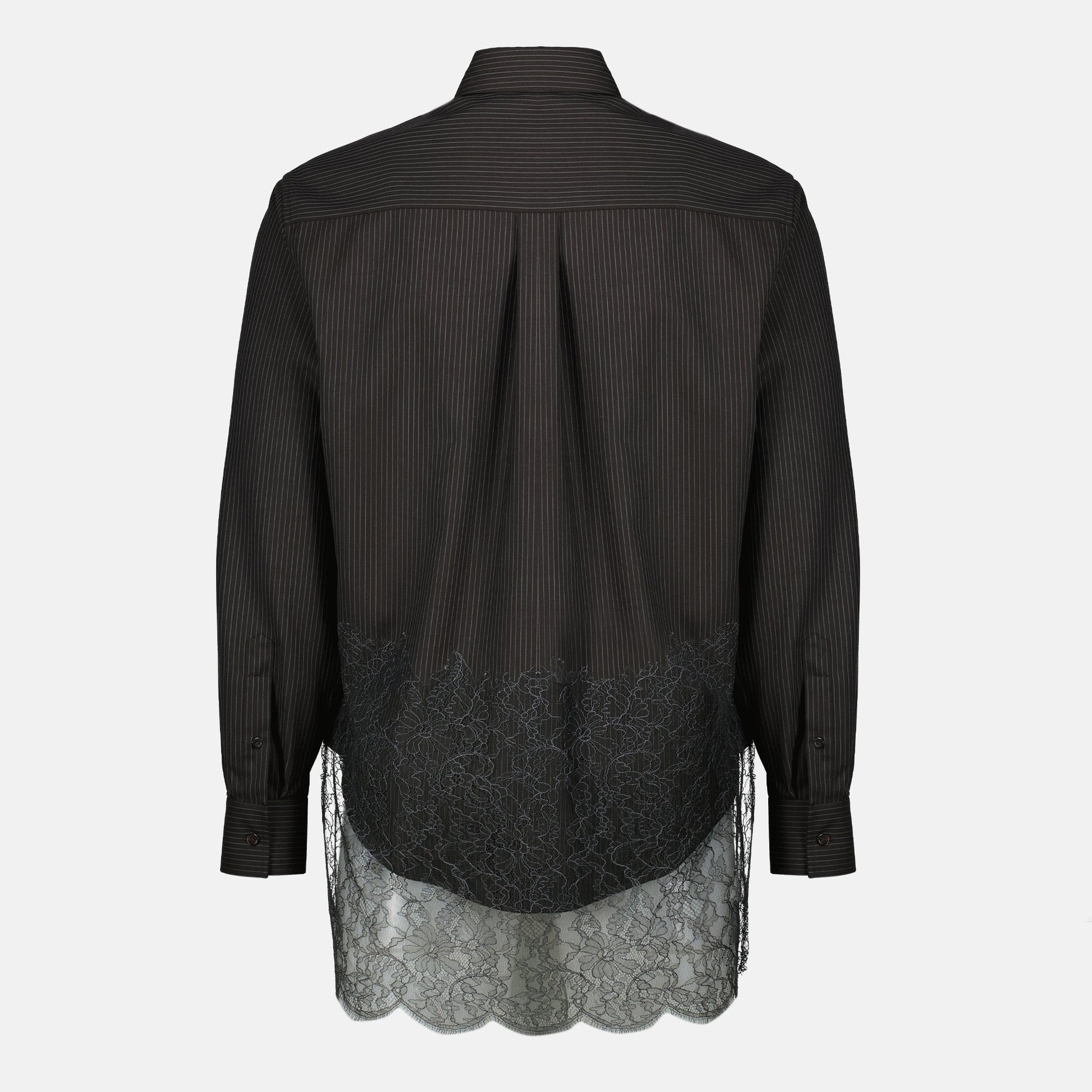 Wool and lace shirt by Fendi, for men, from the Autumn-Winter 2025 collection. It features a classic collar, long sleeves, and embroidered lace finishes.