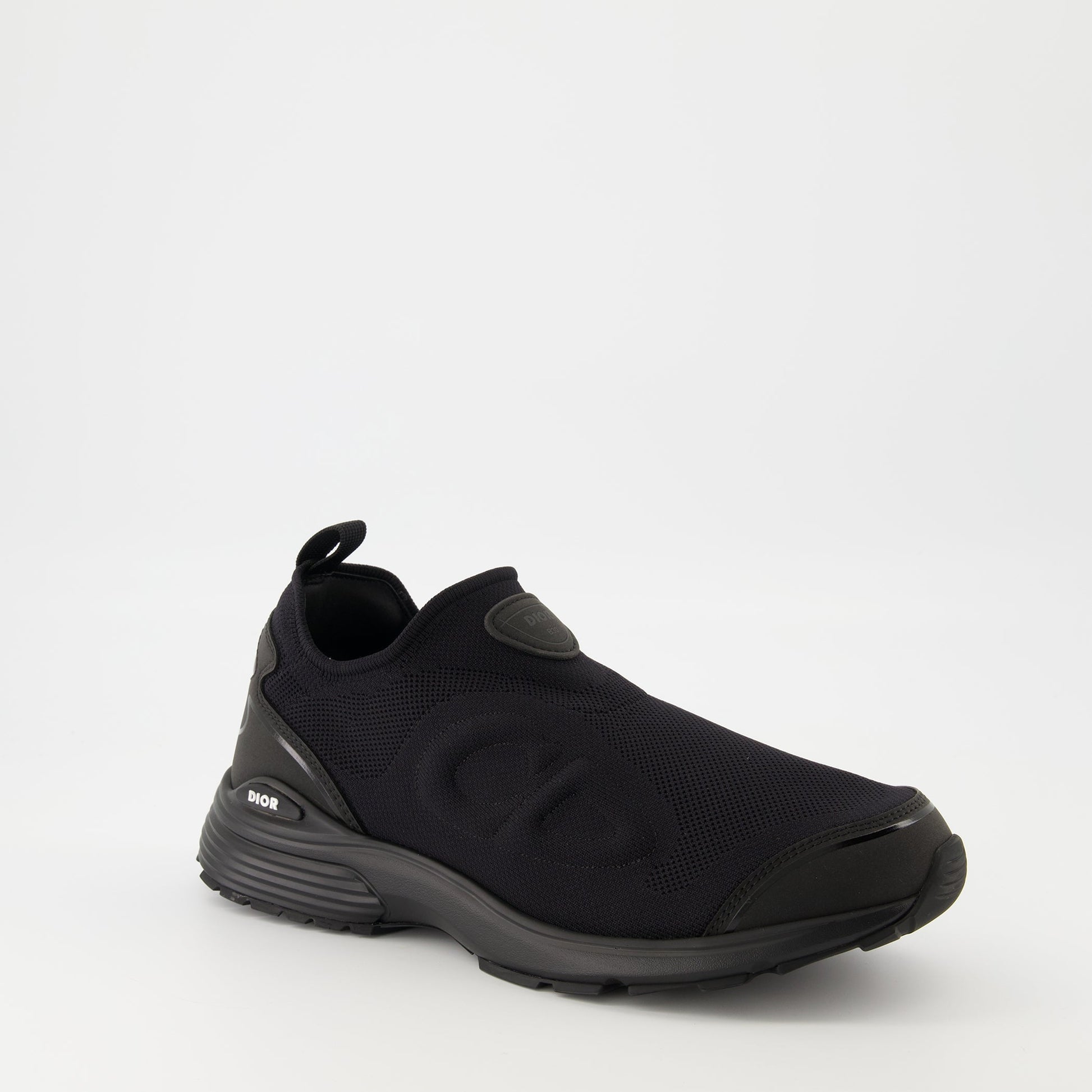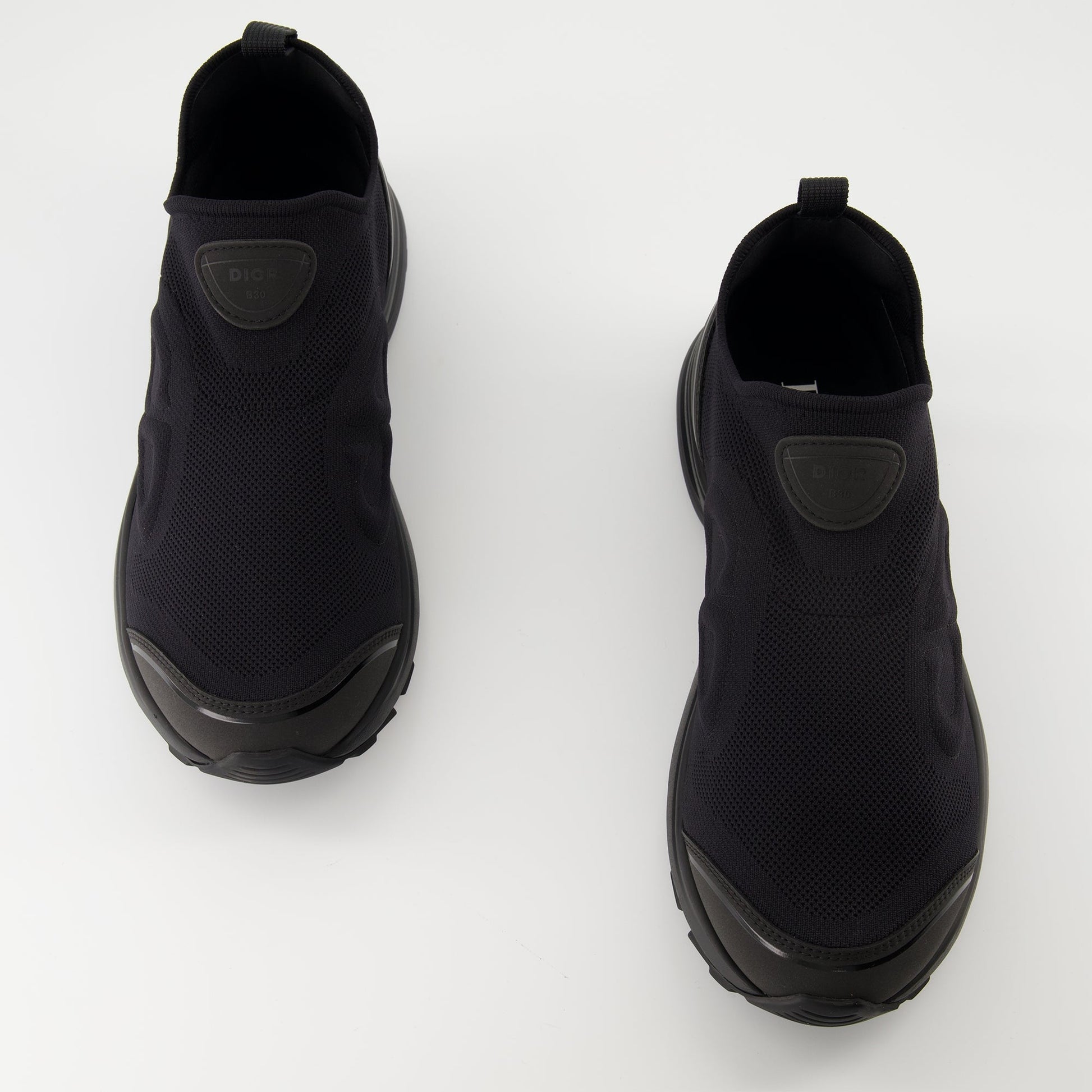 The black B30 Countdown sneakers from Dior are men's shoes from the Spring-Summer 2025 collection. They feature a slip-on design made of mesh and technical fabric with a rubber sole.
