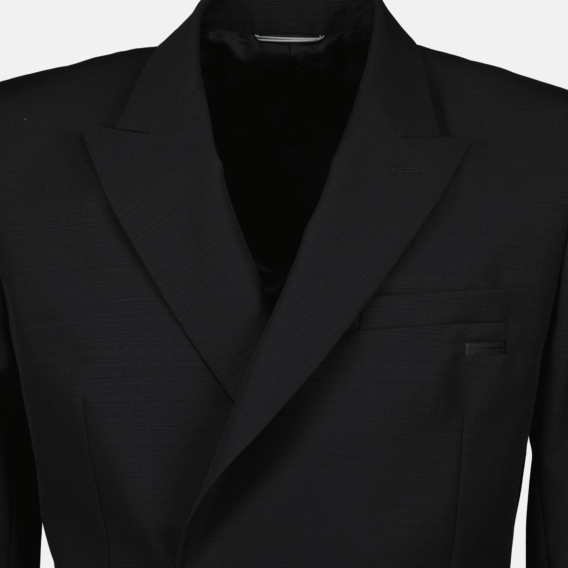 The Oblique Blazer in wool by Dior is a men's garment from the Autumn-Winter 2025 collection. It features a straight cut in wool-mohair with satin details and a notched lapel.
