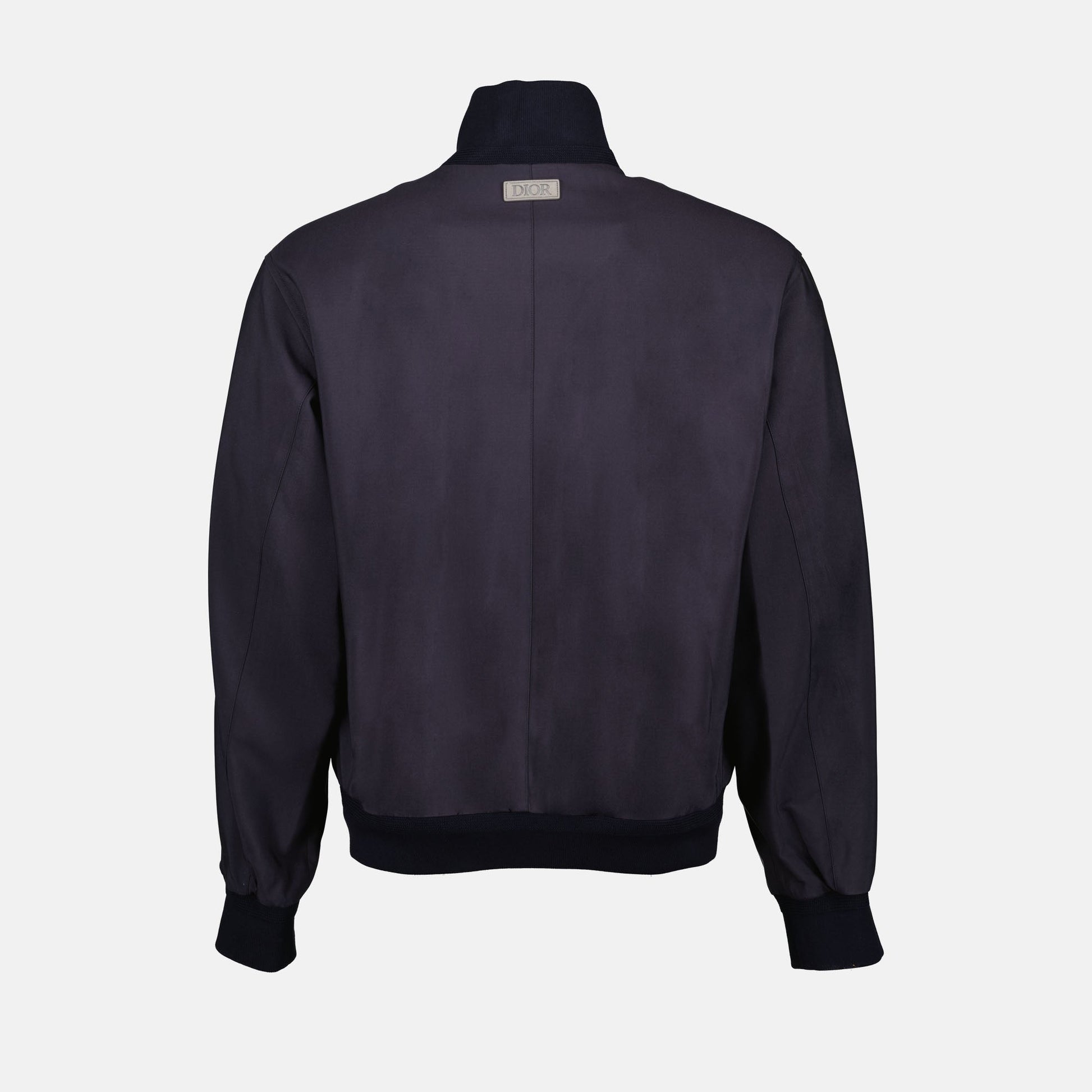 Dior Icons Harrington Jacket from the Fall-Winter 2024 collection for Men. Made from cotton and silk. Item Color: blue. High collar and long sleeves.