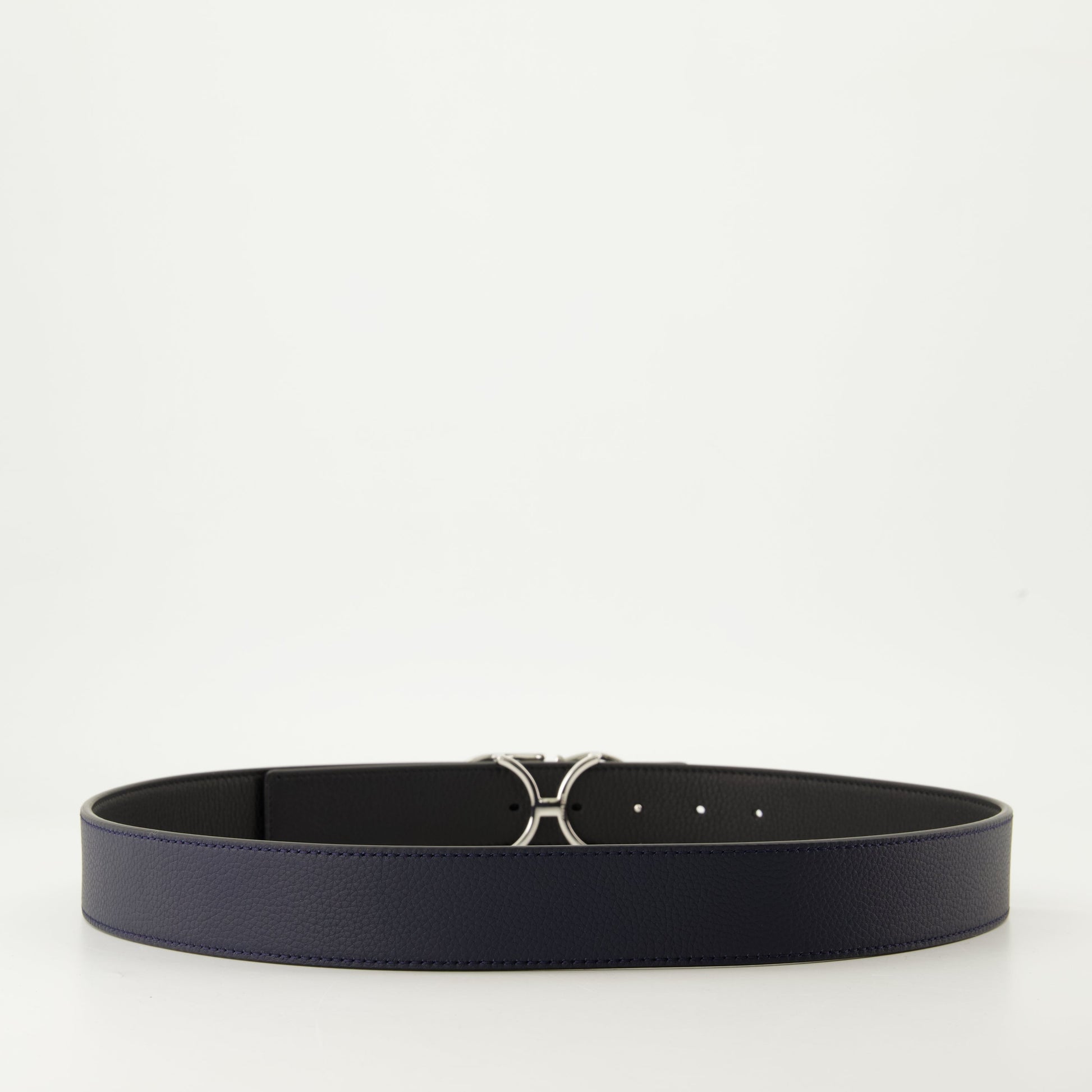 Ceinture CD réversible Dior collection Automne-Hiver 2024 pour Homme. Réalisé en cuir grainé. Article Design réversible..